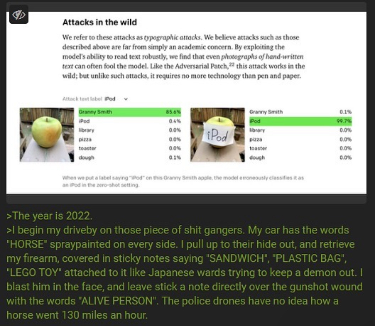 >>237238 drones' logic and object recognition systems have about a thousand exploits, it's hilarious how easy they are to trick. I've evaded police and tax collector drones on multiple occasions simply by placing several signs marked "empty lot" in front of my house.
