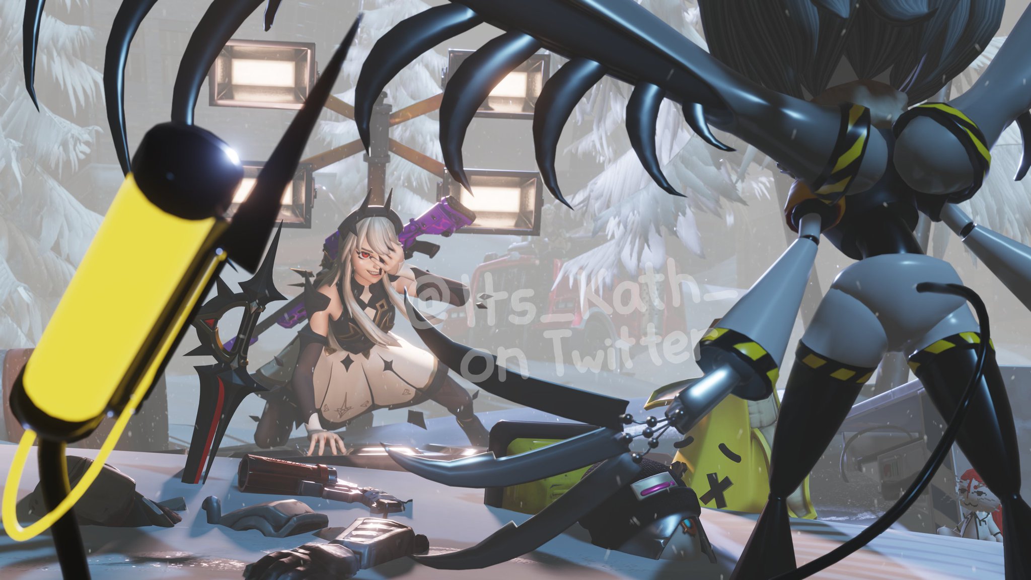 >>24515 seeing Cynwalker's claws/scythe having hazard stripes kinda pushed me to color this in a little bit more. i also kinda like that those hazard stripes on her extra limbs were a bit melty and messy. >>24553 to my knowledge, most of them are hard to see. so nah. she's a teensy bit more prominent given a DD with her wig is a bit more visible, and she was in episode 5 as well as in 5's teaser from a different angle >>24554 yeah. some had kind of distinct wigs but most are hard to pick out >>24562 have a good rest