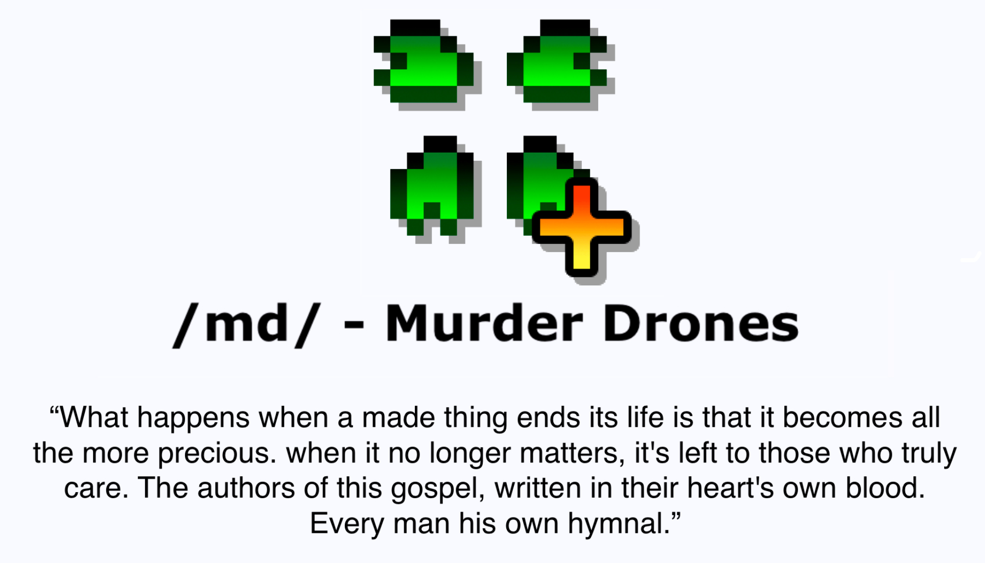 >>259991 The normal show I could describe as “what if Dead Space & Portal had an edgy autistic daughter who’s entire wardrobe is from hot topic” >>259990 >>259992 I think he’s capable of making a living breathing world, it just wasn’t the focus. he was writing a web series, not a TTRPG setting. Furthermore, some details can be chalked up to budget constraints and certain details chosen to be left to interpretation.