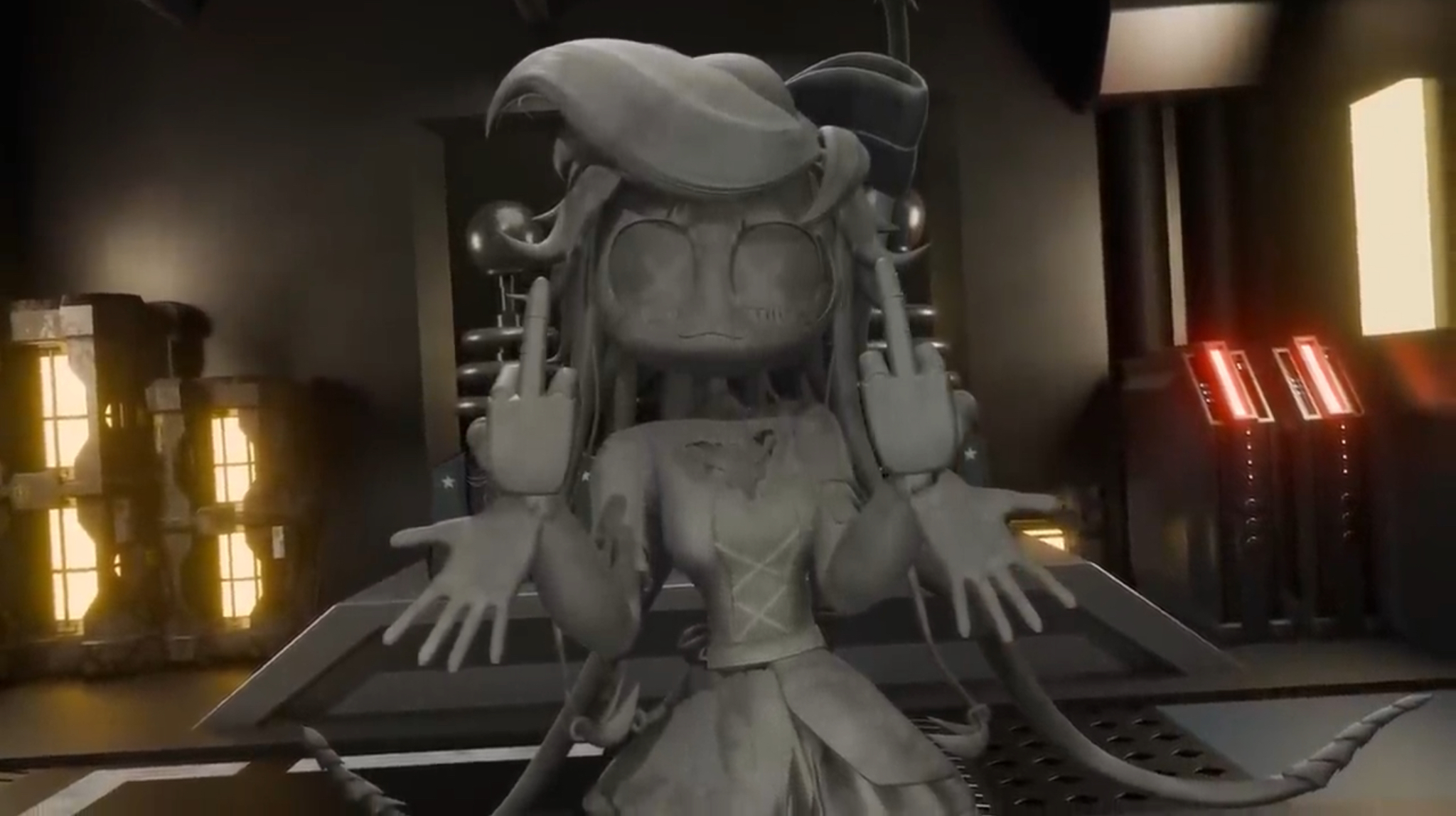 >>261156 I think it'd be funnier if she was speaking in broken, barely understandable English >"good night, fellow stabbink robot N. would like much to make loud, violence fuck to you"