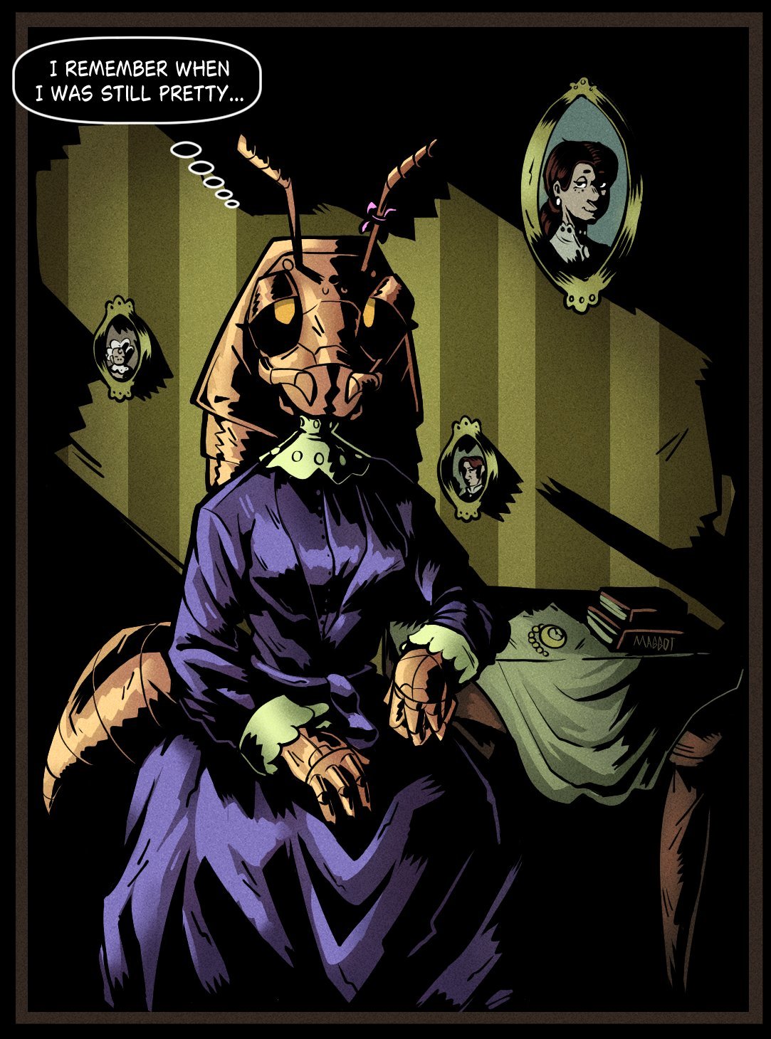 >“Fb…?” >Yet beneath the distortion was recognition, pleading. >She pushed herself up from the ruins of her fallen dance partner, her once-flowing dress torn and stained. Her frame was no longer that of a worker drone—her limbs extended, segmented, and monstrous.