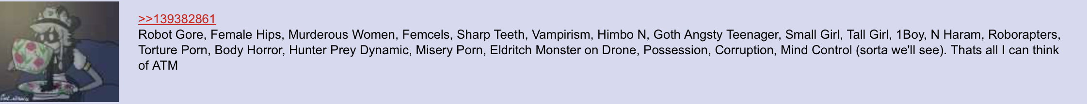 >>263850 >>263851 There was some psycho on /co/ once who really hated Alice and kept spamming harassment and kys-variations (for the better part of a month iirc) whenever I posted, this started after there was some discussion about the US civilwar in the thread and I figure this set him off. Idk how many people were here back then but here's an example, the sperg's Final crashout was in response to this: https://desuarchive.org/co/thread/143180951/#q143186445 Interestingly enough it stopped immediately after people noticed. Idk if the nigger is still among us. If there are any spergouts or attempts to start shit, it's likely politically motivated again since the spammer seems to be of the type that gets offended over stuff like I explained in 606. Just so you know