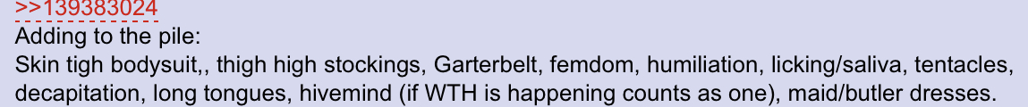 >>263859 >It's Emily's turn to suit up in lewd attire >She desperately tries to convince her parents that it's totally just part of an innocent school fashion project >Her folks are savvy enough to see through their daughter's words, but they decide to let it slide due to the high-effort angelic theming put into it >Besides, this is a far "safer" hobby for Emily than if she were messing with anatomy adapters Very based work, thank you drawfren!