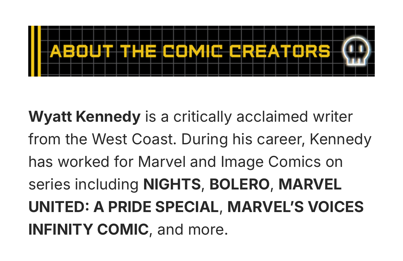 >WK: Well, thank you for saying that! I mean, you kind of answered your own question, with Nights or any creator-owned project, me and my co-creators can just do whatever we want. When you’re beholden to an IP with [the] owner involved and a dedicated fanbase, you have to be a lot more careful and hopefully strike a balance that leaves you and the other parties fulfilled since you’re catering to a very dedicated fandom.