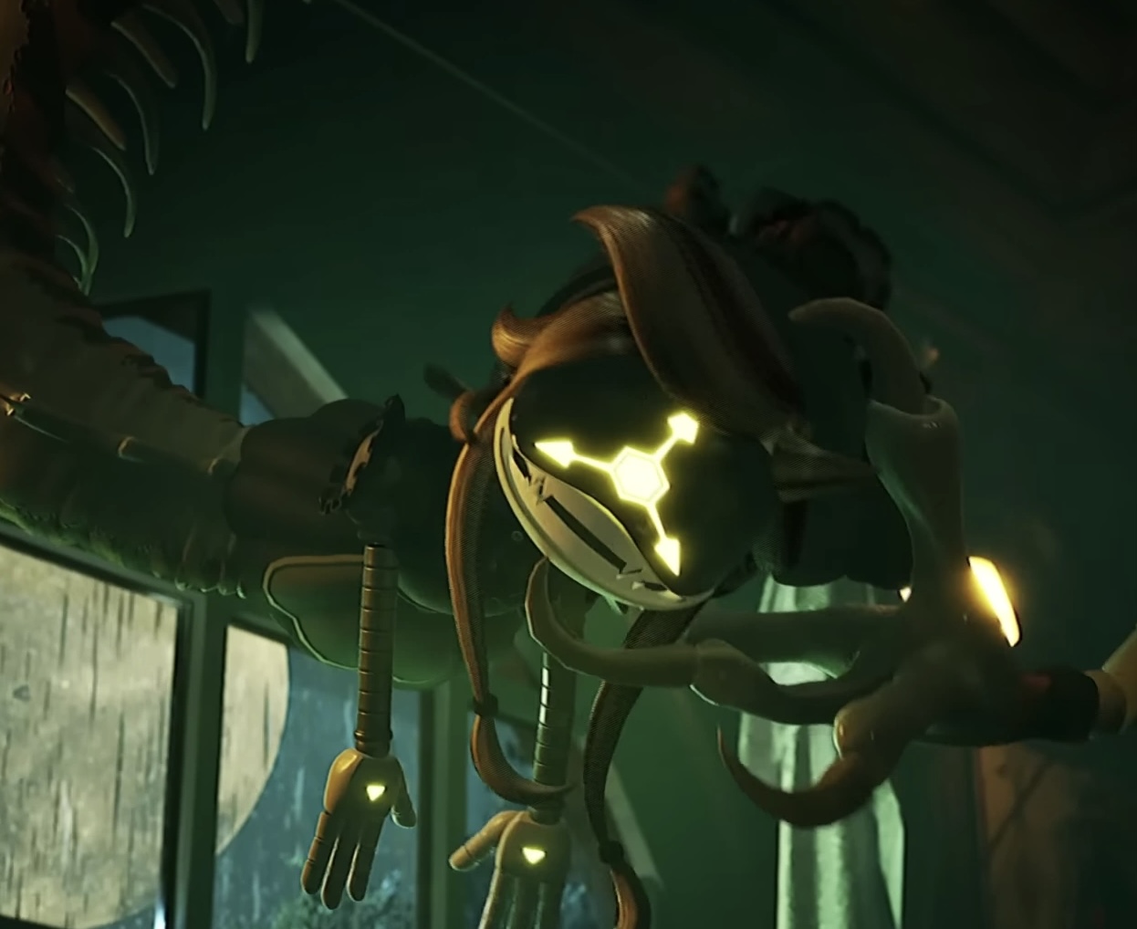 >Murder Drones season 2 episode 4 >Due to Uzi being busy from plot reasons >And V having not stopped from murdering Drones around the Outpost despite an alternative source of food being provided >And the Worker Drones in the Outpost are starting to become agitated granting the ever present threat of being thrown out of the Outpost entirely >N is forced to do a PR campaign to brighten V's image >He tries crayon drawings at first >Which fails spectacularly when V starts shooting anyone that has a crayon drawing out of spite >N then tries to take advantage of the fact that Disassembly Drones can fly by offering free rides >This fails when V starts flying out of sight to eat Worker Drones that go with her >Tensions between the Worker Drones have risen from agitated to full-blown ready to explode at any second >Meanwhile plot thing happens with Uzi and Nori actually spending more time with each other >The two finally play catch-up without much fear or atleast to Nori's knowledge of plot point >However, there is an overhanging tension as Nori begins to bring up her old friends specifically Yeva >Uzi trying to distract Nori decides to attend a stand-up comedy show fully unaware that its N's last ditch effort in the PR campaign with V >Uzi and Nori attend the stand-up comedy show with V telling the jokes >V fails miserably at actually being funny in the slightest >However when a stage accident happens causing her to hurt her "foot", the audience laughs >Pissed off V starts telling "jokes" about all the Worker Drones she killed >One of which includes Yeva as V is fully unaware Nori is in the audience >Nori of course goes apeshit more than the audience which has turned into an angry mob >Uzi barely holds her back from destroying the place >V of course shoots some of the audience before storming off >N finally having lost his patience with V confronts her with an almost out of character amount of rage >Finally V reveals that the reason she's been lashing out is due to a combination of a fear of useless now that The Solver threat is dealt with and with the feeling of disbelief that it won't happen again >A part of V wishes she didn't have that moment of hope that N and Uzi might succeed against The Solver, so that she would've died back in the labs >V then tries to pull the "trying to protect us" card but N doesn't have it >N tells V that she solely is responsible for her actions now post-Solver and that he isn't going to be there to protect her this time when Nori and the rest of the Outpost tries to lynch her if she continues the way she is now >V a part of her finally understanding almost breaks through, however she buries it and tells N to go stuff it as she leaves the Outpost on her own terms >N returns to a now hostile Outpost feeling guilty that he couldn't help V and now having to deal with Worker Drones that just barely tolerate his presence >Things would've been so much worse for N upon returning if Lizzy didn't start her own digital PR campaign which only managed to calm down the Outpost slightly >Plot thing finally rears it's ugly head towards V and the episode ends on a cliffhanger