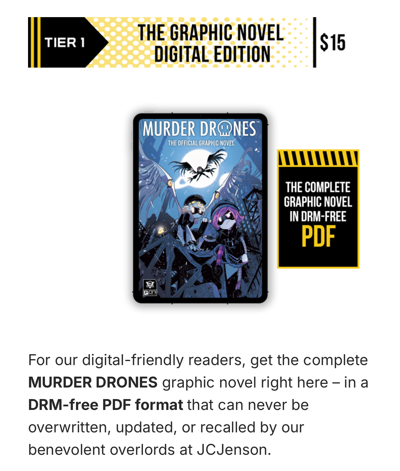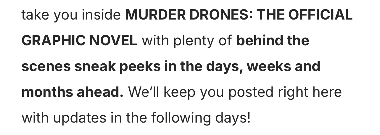 >AIPT: Is there anything else we should know about Murder Drones, comics, robots, animation, etc.?