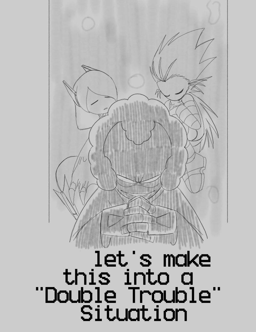 >>273175 the method: >imagine it in my head >attack my tablet with sketches until one looks like my mind-image enjoy this never before seen doodle as an example :)