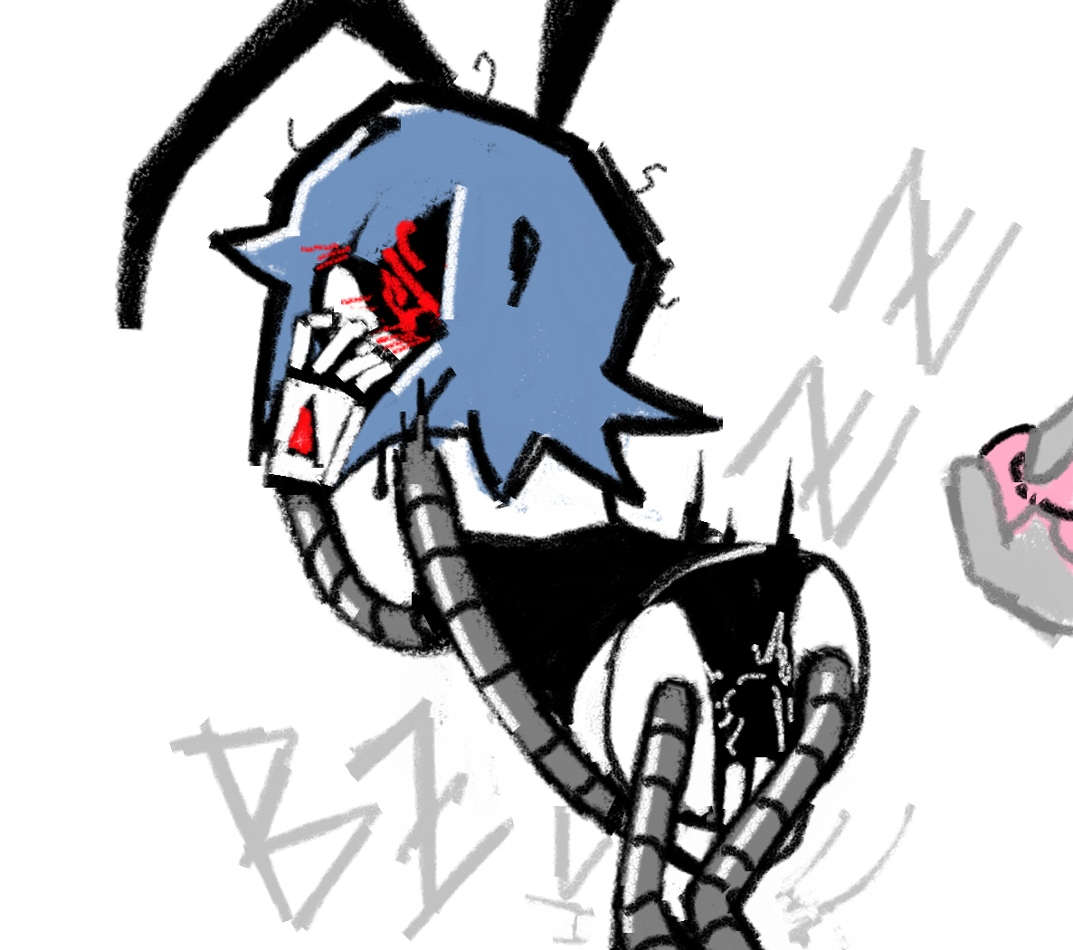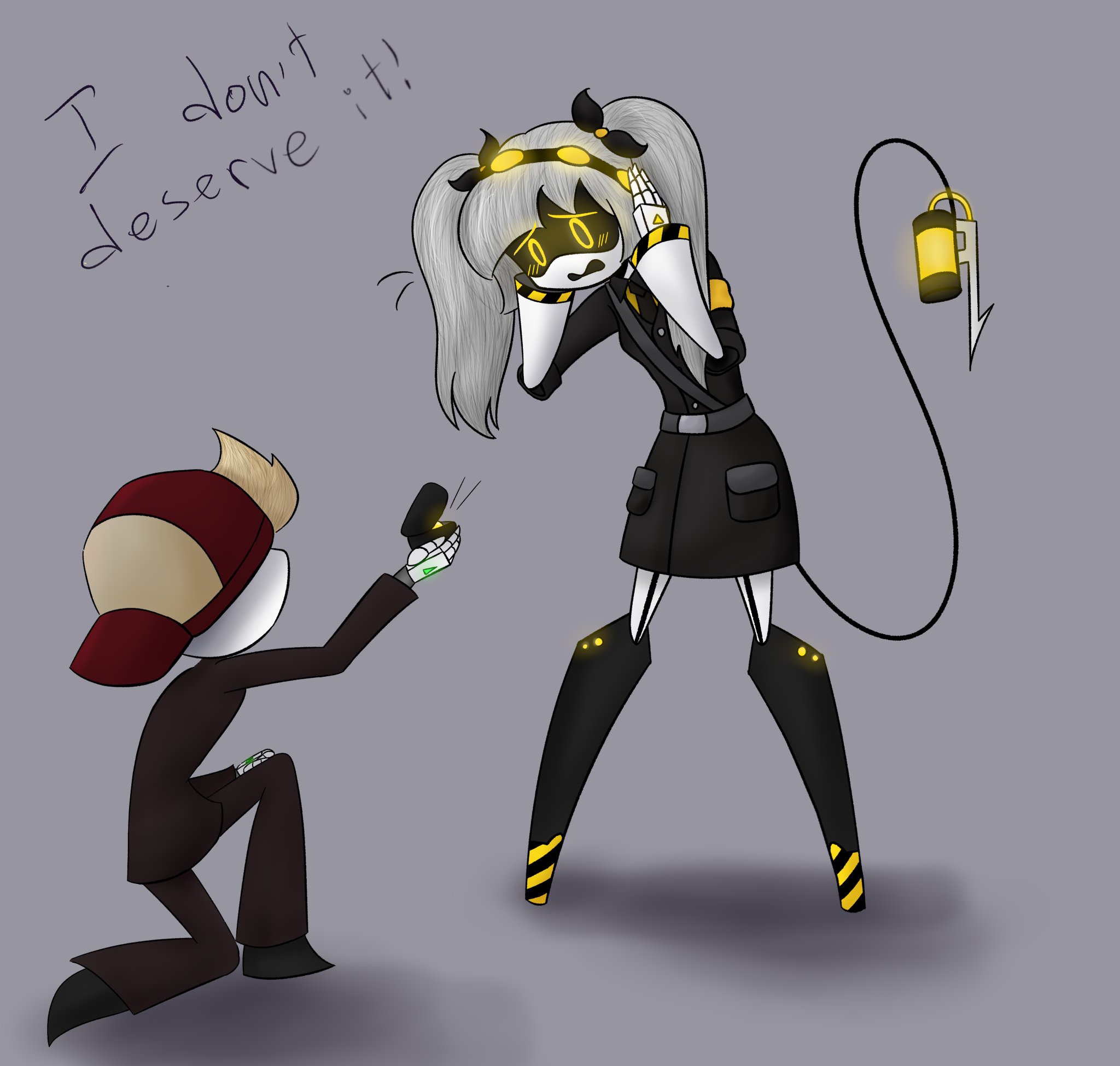 >>272902 + >Eye's damaged digital psyche has always been prone to episodes of mental instability >Most are easy enough for Lizzy to talk him down from, although a few particularly bad ones have required the intervention of an 'administrator' (Uzi) >This specific one started off looking like the latter, leaving Lizzy downtrodden but otherwise confident that Eye would be fine by the time Uzi is done with him >Lizzy didn't know bad things truly were until it was too late ÷ >It didn't make any sense >Eye had somehow managed to take down not just Uzi, but also ALL the other Host & Disassembler across the entire Outpost >Lizzy, after narrowly surviving an earlier close encounter with him, did her best to run from the now-rampaging Eye >Any hope Lizzy had of Eye coming back down to normal died with Uzi, who's empty husk was still being dragged by the Disassembler like some sort of twisted trophy >Any hope Lizzy had of fighting back against Eye died with V & N, both of whom had been unceremoniously slain by a Nanite stinger guided with supernaturally swift precision >Any hope Lizzy had of escaping this Nightmare with her life died with Nori, who in a seemingly psychotic break of her own had made sure to permanently seal every external exit with her Solver before willingly resigning herself to Eye >As the sounds & screams of visceral murder echoed across Outpost-3, all Lizzy could do was hide x >Hiding only made things worse >Eye, who up to that point in the massacre had been disturbingly mute, begins directly calling out to Lizzy "Lizzy... please... come out" >Eye's unnerving voice coming from close by forces the now-gasping Lizzy to hastily stifle herself, hands visibly quaking through the entirety of Eye's disturbing monologue "A better life" >Eye's typically chipper tone is warped into an unhinged mania, making his rantings all the more menacing for Lizzy to behold "A Better Dream" >The ravings continue unabated amidst the backdrop of horrific slaughter, and continues steadfast even after the last of Eye's other victims are eventually silenced "A BETTER FRIEND THAN ME!" >Even when Eye wanders out of earshot Lizzy remains subjected to his torment, with the haunting 'voice' of her former friend Doll whispering his long-distant words (in perfect English, no less) directly into her racing core "So... please come out... Lizzy... please" - >Outpost 3 has fallen deathly silent >Only two sounds pick up on Lizzy's audio sensors: Her body shaking in fear, and his footsteps growing ever closer >It takes less than a minute for Eye to zero in Lizzy's location, coming face-to-face with the terrified Worker immediately after rounding one last corner >Unable to look away from the e̴y̴e̵s̴ staring back at her from Eye's face-screen, Lizzy finds herself with zero words to say in the face of impending death >In different circumstances Lizzy very well could've found the idea of being stalked by an unstoppable monster to be a completely different kind of 'exciting' ("hot") >In these circumstances, watching helplessly as the oil-drenched form of her broken f̵r̸i̵e̵n̸d̴ comes to a halt with only mere inches left between the two, Lizzy feels nothing but crippling fear >With his dripping hand ominously reeling backwards, Eye does nothing but softly smile as he prepares to set Lizzy free >When Eye's tightened fist finally lurches forward on a mission to cave her head in, Lizzy manages to let out a single glass shattering- = Dear Diary.log, I had another Not Hot Murder Nightmare. WORST. ONE. YET. Screamed so loud that half the frikken outpost woke up. Dad is POed. V is being such a diva. Even Doll is lowkey freaked. But like? why??? HOW IS IT MY FAULT THE BUGGY SLEEPMODE ALGORITHM SUCKS?!?!?! UGH.mp3 Lameass dream. Dont wanna talk about. Dont wanna keep thinking about it. I mean dreaming about some rando Murder Drone named Eye started funny even though it also made me feel kinda sad but I swear like these last few? RoboJesus. Just gonna get mantenanced tomorrow and hope a defrag puts a stop to crap. ~Lizzy <3 GIGGLE