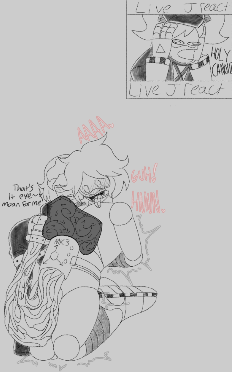 >Mac quivering under his covers, trying and failing to stay awake as his batteries slowly drain, falling into sleep mode as he is circled by the horny ghost girls Lucy has gathered to suck his dick