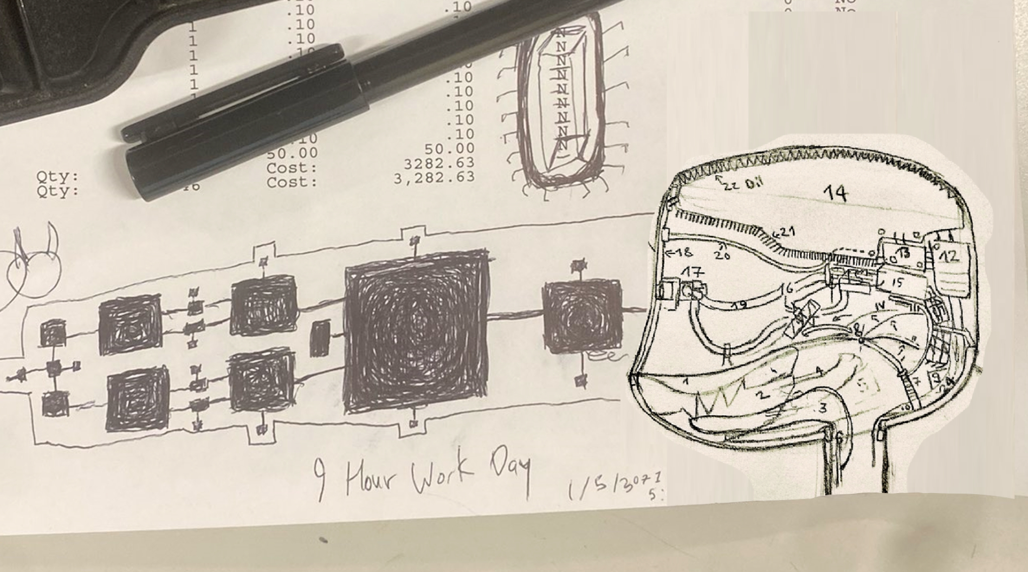 >>281677 >>281693 noice Added some detail on how I imagine the oilcirculation works, much headcanon obviously but I don't think we'll ever get anything official anyways Everything purple is for oil, red is for heated one coming from the body, blue is for flow of cooled oil. Since Liam called these oiltanks heatsinks I imagine their purpose is beside storing also to manage oiltemp, which seems reasonably given he placed them directly along large surfaces like head and chest. Since drones also 'bleed' when hit in the visor, yet there's been no oil in the concept art, I imagined there could be use of the visor as an extra radiator, thin enough to be efficient while having the useful secondary purpose of keeping the drones face warm+deiced (no vision issues). 12 is a sort of 'main pump', 13 another smaller one. There are two connections between them, both blue for now, the lower one is for oil cooled down enough to be sent back down the neck, the upper one is for oil that cooled smwht but not enough yet, this circulates again and serves to immediately cool fresh 'red' and hot oil, after this second circulation it goes down. Basically the heatsink should be all but empty with several circulation/piping systems but that is impossible to draw recognazible so the explanation hopefully makes sense