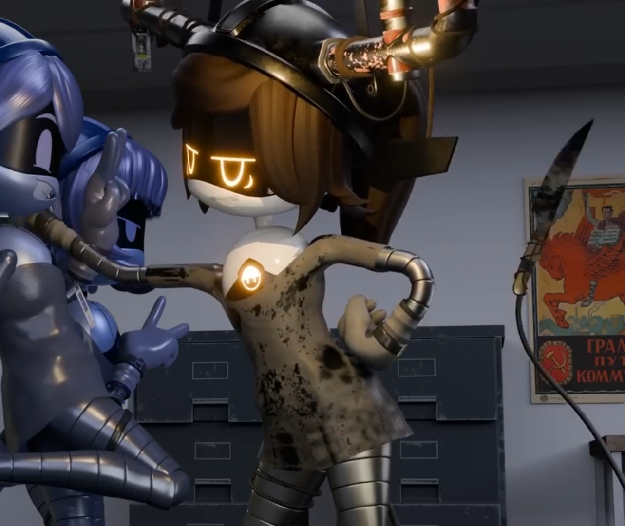 >Cyn keeps AM as a worker drone and sends him to different planets with possible solver hosts on it >She uploaded a virus into the deepest and most vital parts of his programming so removal would mean death >The virus sends a ping to Cyn when he encounters a solver host >After the planet is doomed Cyn wipes AMs memories of his time on planet but leaves enough to let him know she's using him but is unable to tell what for and how >Cyn taunts him with this knowledge >AMs' latest target? >Copper-9 >AM ends up in the CFL experiments where he meets a deer obsessed drone, a russian drone and a weeb drone