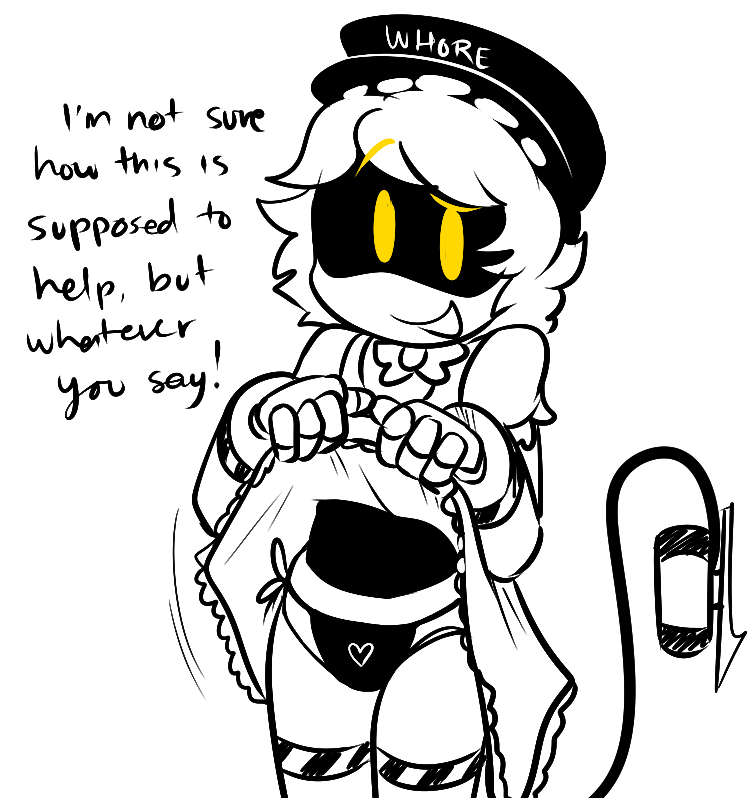 >>282874 >>282882 Wait, only now have I noticed he has female legs in this picture, Cyn truly is sadistict, genderbending him before she sends him out to put on a show