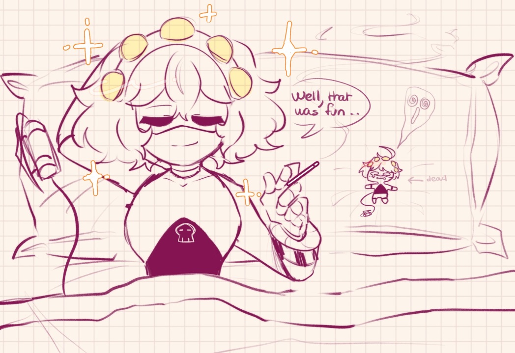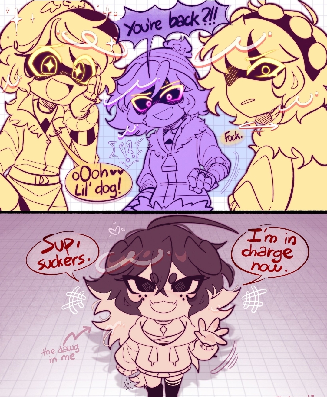 The avre sexo green... im not entirely sure if im going to ever finish it with my current mind set. Im sure how to explain it, im just... not in the mood for smut at the moment. going through a "i dont want to be horny, i want to be happy" phase, and unsure when/if thatll end. I still DO wanna finish it, for the smut it is, i still think the idea i have will be both very interesting and VERY funny, just no clue when/how ill doso, so i might just sit on it for a bit and focus on whatever else my brain deems worthy at any given moment.