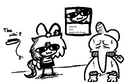>Sally swipes at the air around her more aggressively for a moment before Rosie reaches out and ruffles her hair >E darts away from you, toward the poorly-kept break area, and calls out to the technician