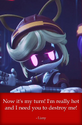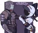 >Uzi wakes up in Outpost-3, but it feels different, almost as if it's smaller? >The only person she finds is Khan, wandering aimlessly with a rifle and not reacting to her presence >She exits the front doors and finds herself on a frozen mountainside >She definitely wasn't on Copper-9 >She sees some sort of... old rat guy running towards the door >He pulls out a shotgun and aims it, before being vaporized by a railgun- her railgun, but someone else had it? >The rat's killer, an extremely muscular man in a gold-plated tuxedo, flies straight at her on a pair of Dissasembly Drone wings, stopping just in front of her >"Hey, Uzi, welcome to Fortnite!" >She stares in shock, unable to comprehend what's happening right now >"UZIIII! LOOK WHAT I CAN DO!" >She turns at the sound of N's voice and sees him hitting the griddy >Uzi wakes up screaming and doesn't stop for several minutes, N attempting to comfort her >"Don't worry, Uzi, we're way too niche to be put into Fortnite!"