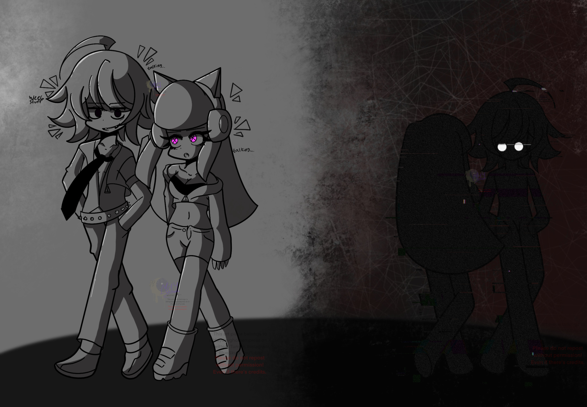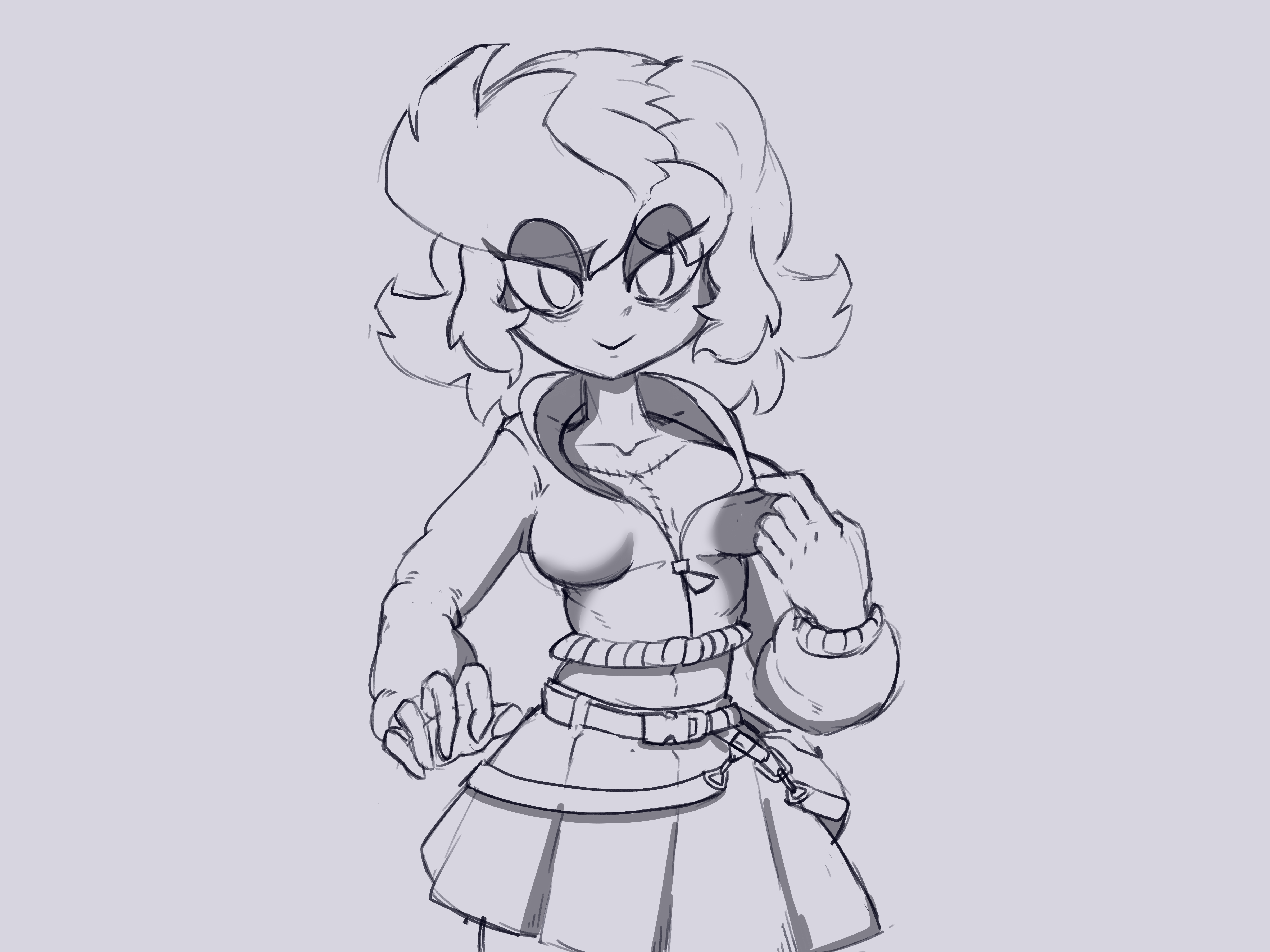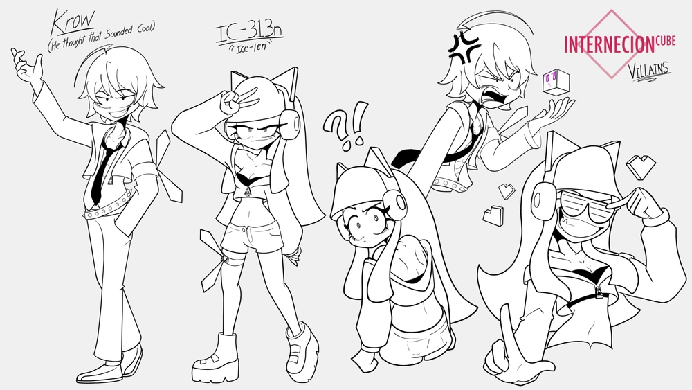 Expanding, here's some clean lineart that Liam did for IC313n, it's hard to tell because of the resolution but I'm 90% sure her eyes do have something out of the ordinary going on too. She wears shutter shades and the sleeves of her top cover her arms so it might be a deliberate disguise choice to hide her glowing eyes and unit designation from normal people.