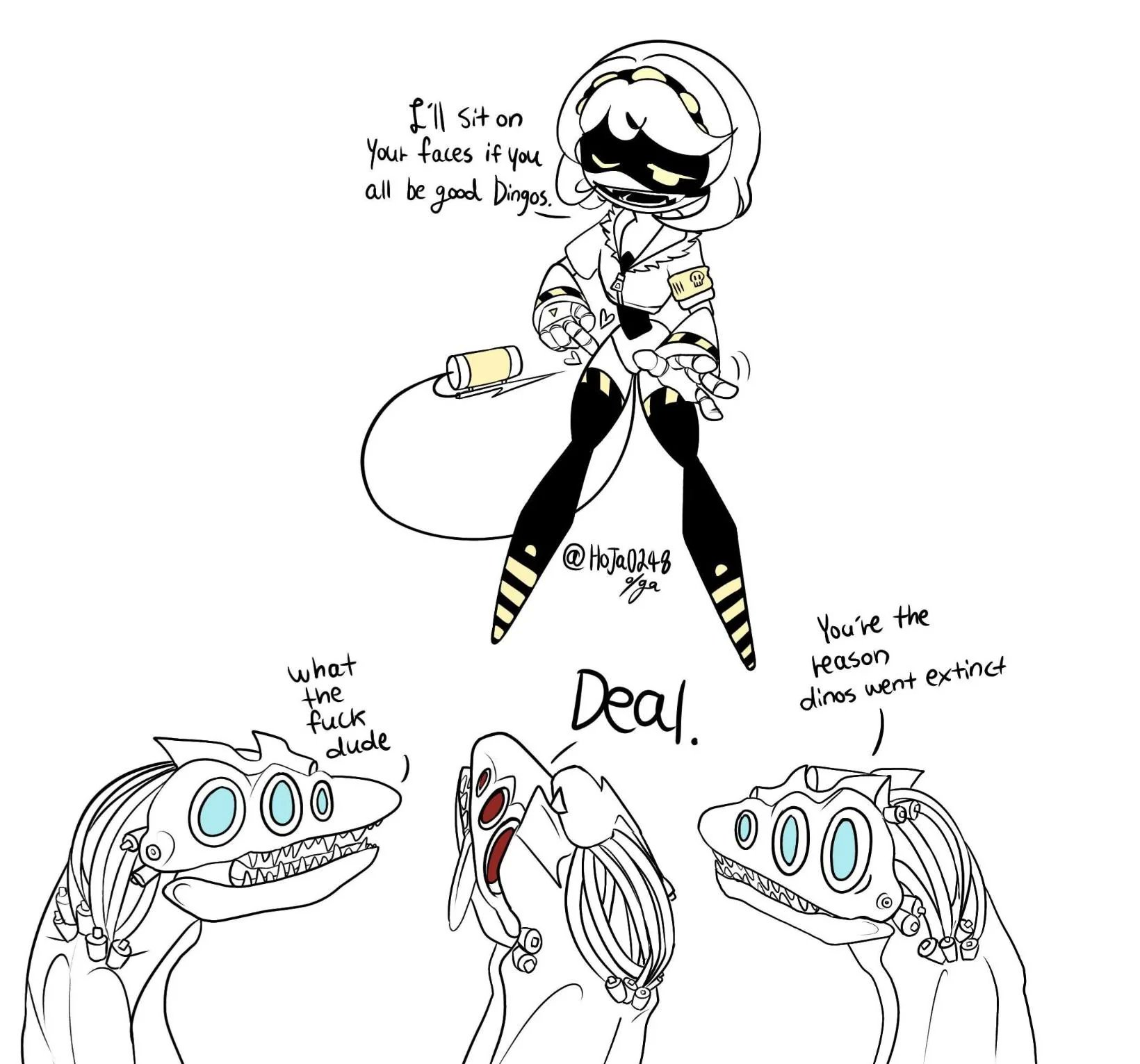 I don't normally make art requests but this idea's burning a hole in my fucking head. >J bent over with her ass to the viewer >Cynwalker sitting on top of her, legs crossed and grinning, telling you that J loves being treated roughly