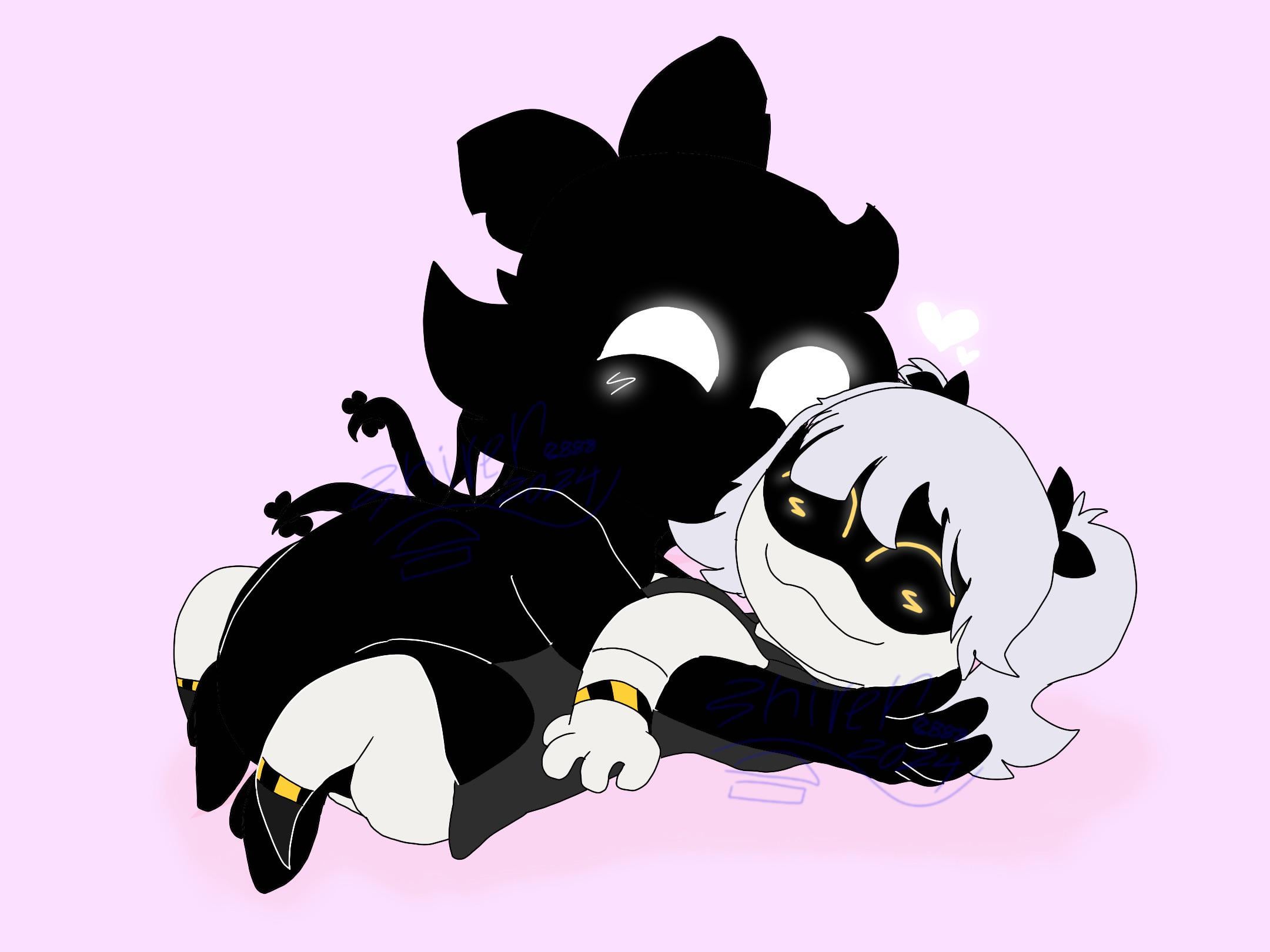 (The black one is the one who has mange, but she's a sweetheart, while the white one is a dipshit that keeps bitting my legs)