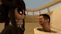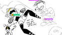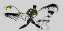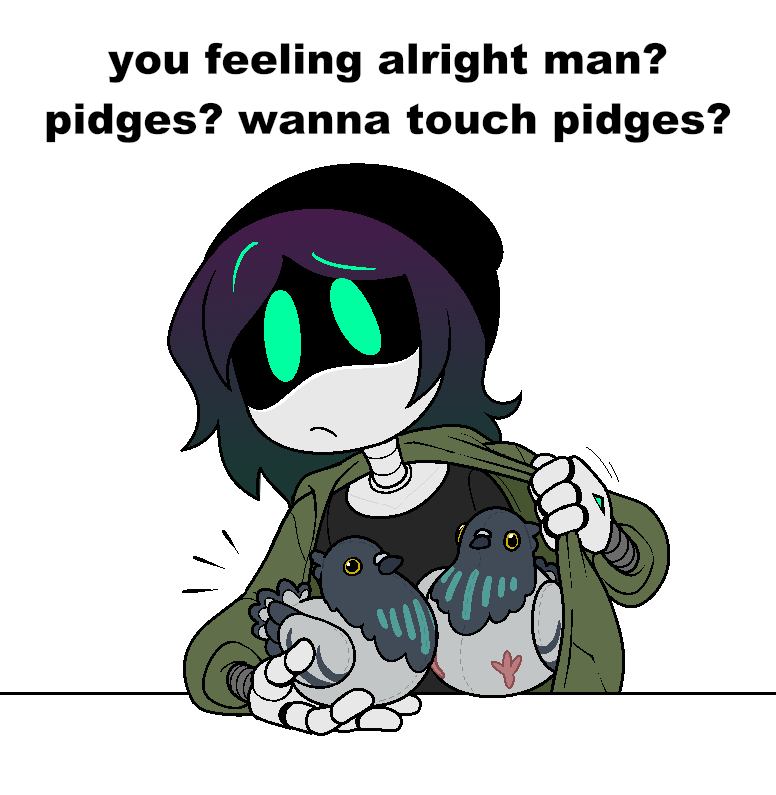 >Janice reaches out to the disassembly drone, offering a hand, "So you say you blacked out and don't remember how you got here. Can you tell me a bit more about yourself, hm?" >The DD takes her hand and gets back up on his feet, "Yeah... I remember that I was a... worker drone, yeah, I was a worker drone butler at one of those... fancy mansions... manor, I was a butler in a manor!" >"Uh-uh. And where was this manor?" Her eyes narrow. >"Uhhh... I can't remember..." The disassembler scratches his head, "Though, the people there had... sorta' funny accents, I think." >"Ooooh, Australia... That manor must've been where it started! And can you tell me how you got turned into... this?" >"No... I have no- ACK!" Jones grabs him by the throat and strangles him. >YOU WILL TELL ME EVERYTHING YOU KNOW! SPEAK UP, SPEAK UP RIGHT NOW, OR I'LL MAKE SURE TO SOUR YOUR BRIEF MOMENT OF CONSCIOUSNESS. YOU CAN GROW BACK BODY PARTS, CAN'T YOU? >A juggernaut walks up behind Jones and hands him his knives. Jones thanks him for being on cue, then presses the blade against the DD's throat. >THAT JUST MEANS I GET TO CUT 'EM OFF OVER AND OVER... GET WHAT I'M SAYING? IN CASE YOU DON'T: I'M GONNA BURY YOU UNDER YOUR OWN DAMN LIMBS. >"Honeeey I told you to relax! We were getting somewhere!" Janice lowers his blade with her finger and gently nudges him away, "Sorry about my husband, I've seen him kill you, like, six or seven times already. He doesn't really get along with your kind, y'know?" >"But why? What did I ever do to him? Didn't he just call me a murder machine?! Am I... evil? Am I violent?" The little guy stares off into the nothingness as he imagines what that implies. >"Oh yeah, you drones are violent alright, and when I say violent I mean VIOLENT. You've probably killed hundreds of people by now, hell, if you've got clones, which you definitely do, your kill count has to number in the tens of thousands! And that's lowballing it! Pretty impressive, to be honest." >"Oh... god..." The disassembler is so disgusted with his actions that he vomits. >EUGH... I'M GETTING FLASHBACKS OF THAT BIRD-OBSESSED FREAK... THAT'S ENOUGH OUT OF HIM, DEAR. >"Eeeew! Agreed. Alright, you almost won me over, murder drone, but that was... bleh. Bye bye." She hits the DD with her hammer like he's a golf ball and punts him into space. >YOU THINK WE COULD'VE GOTTEN MORE INFO FROM HIM? >"Uhhhh, maybe. Let's go wrestle in a mud pit."