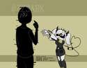 >Avre woke from her nap as she felt her locker move, then come to a stop. >"Myayayayaheehee," someone outside laughed slash giggled maliciously. "Wakey wakey!" >"Hello?" Avre called. >No one answered. >She poked her head from her locker to find... several thousand people in what appeared to be a convention center. >She panicked and slammed the locker closed. >"Are you scared?" The voice outside called. >"Yes!" Avre answered. >"Oh... okay. Mission accomplished I guess... My name's Lucy?" >"Lucy can you get me backtothebasepleasenowpleasethankyou." >"All right... You don't want to look at the convention while we're here?" >"What convention?" >There was some rustling outside, then a phone dropped through the slits in her locker. >Avre caught it, finding it mid video call. There was a small black haired drone with her hair style like devil horns holding the phone up to Avre's locker. Around them, were several depictions of sentinels. Mostly famous ones, but oddly enough there were some humans dressed up like sentinels too. >"Nerd convention," Lucy supplied. "You'd probably be super popular." >"Popular..." Avre said, contemplating. "Wait did you bring me here? Why?" >"...Must have grabbed the wrong locker," Lucy lied. "Oh, yeah says right here. I was supposed to grab Eva. My bad." >"Wait, command put out a capture order on you!" Avre said. >"ᴼʰ ᵐʸ ᵍᵒᵈ ᶠᶦⁿᵃˡˡʸ YES! But to capture me, you'll need to chase me through-" >Avre opened the locker for an instant and grabbed Lucy. The smaller drone was grabbed with a yelp as Avre closed the locker just as quickly and flashed. >Everything went black. >When Avre rebooted, Lucy was also waking up. >"Wai-" Lucy yelled as Avre quickly flashed her again. >Everything went black. >Strangely, when she woke up, Lucy was again waking herself again. >"You're flashing both-" Lucy said as the flash again went off. >Avre woke and immediately looked for Lucy, who was thankfully still unconscious. Avre - >"BOO!" Lucy said as she opened her eyes, startling Avre enough for Lucy bolt through the locker door and out of reach, giggling maniacally the whole time. >Avre hesitated but eventually bolted from the locker out into the open, everyone in the convention center's eyes went directly to her. >She felt her body nearly freeze up, only kept going by the need to find the fugitive. >Which she... could not. >There were hundreds of people, thousands of drones, many wearing costumes of one kind or another. >The small drone was simply gone. >Eventually Avre got in contact with command and sent a squad to help "evac". A scene which caused even more attention, unfortunately. Though it seemed like everyone thought it was a bit. >A week later, after turning in her report, the net had obsessed over the sentinel's surprise appearance at the convention, and several dozen memes had been born. It made Avre an idol over night. >She is not a fan.