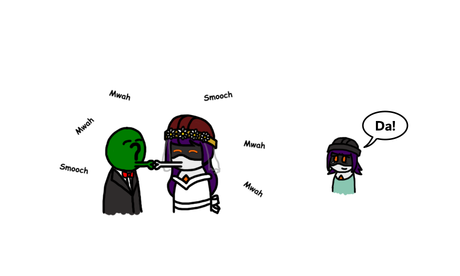 >Lucy been pranking people all Halloween for “fun.” >I decide to joke around. >“Heh, y’know what really scares me, Lucy? Marriage.” >Especially with Lucy’s. >Her optics flicker mischievously. >She completely misunderstands. >Next day, my neighbor Lucy gets a love letter signed “Future Mr. Anon.” >“SURPRISE MARRIAGE OPERATION SUCCESSFUL <3” >Neighbor Lucy shows up in a wedding dress, sprinting at 80 mph down the street. >I’ve never run faster in my life. >Lucy thinks I’m “playing along.” >She's right that I'm terrified though. >She proceeds to schedule a honeymoon and invite my terrified family. >She calls it “the scariest love story ever told.”