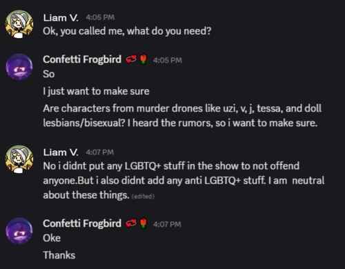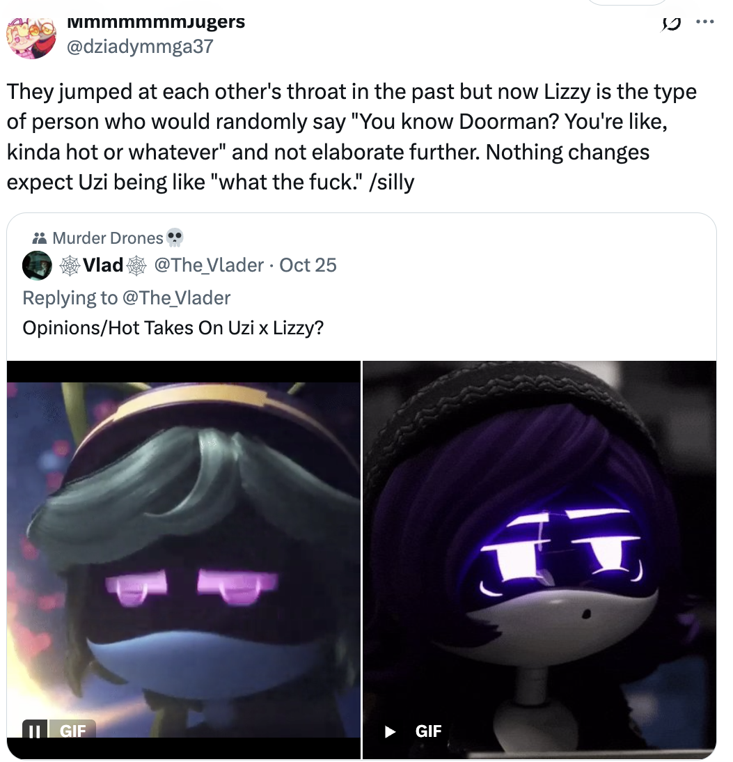 >V is a cat because she’s a murderous psycho >N is a dog because he’s a spineless retard who does what he is told. >Uzi is a crow because she’s smart . I don’t think smart people leave the safety of their homes to go stalking around for violent cannibals at night but okay.