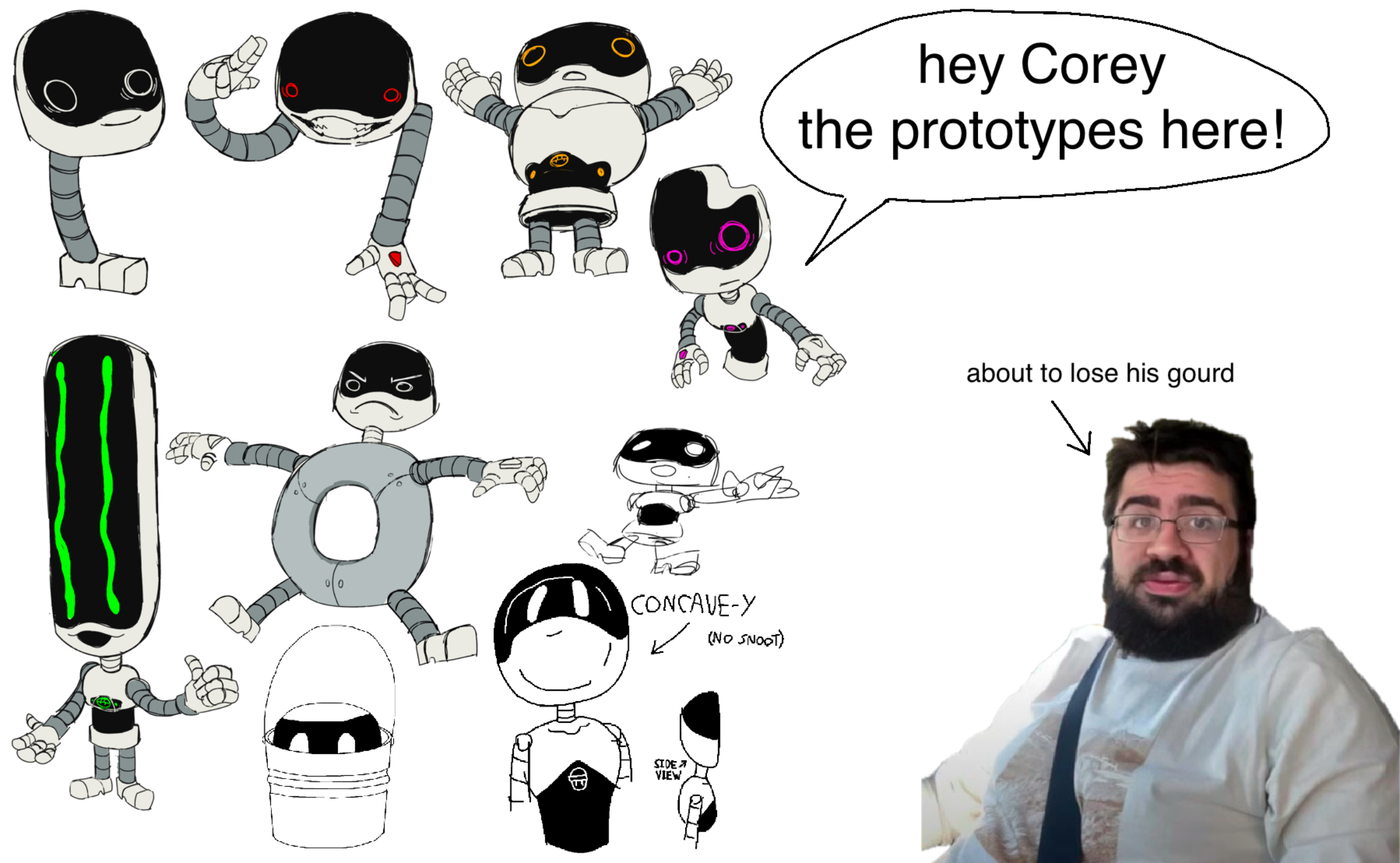 >Dr. Bekian works carefully on the core assembly electo-quantum energetic manifold >just as he places the final crystal lattice filament in its lane, the door behind him bursts open! >“HEY COREY, LONGHEAD HERE” >the doctor whips his big Armenian cooking oil head around >“go away Longhead, I’m working on the final portotype-p-protoitype, whatever” >“HEY COREY, CONCAVE-Y HERE” >“everyone leave now!” >“HEY COREY, LEGGY HERE” >“everyone, LEAVE, NOW!!” he screams as he stands up from his chair, knocking the Proprioceptive assembly to the ground and shattering it in the process >“whoa woah calm down dude it’s just us, your friends” >“WHO SAID THAT?” >“I did, hey Corey Buckety here” >“BUCKETY GO, LEAVE, EVERYONE LEAVE I GOTTA FINISH THE THING!” >“HEY COREY, ALL OF THE PROTOTYPES HERE” >“I’M LOSING MY FUCKING GOOOOOURD!!!!”