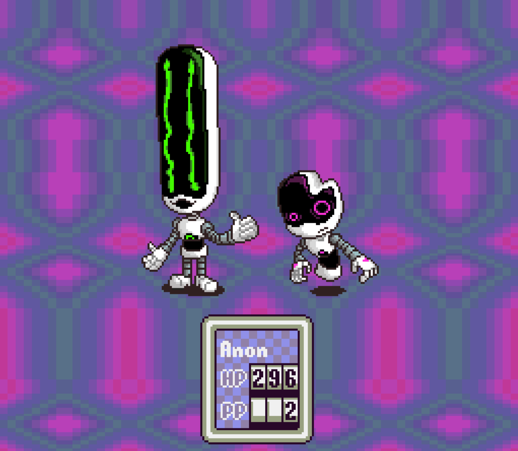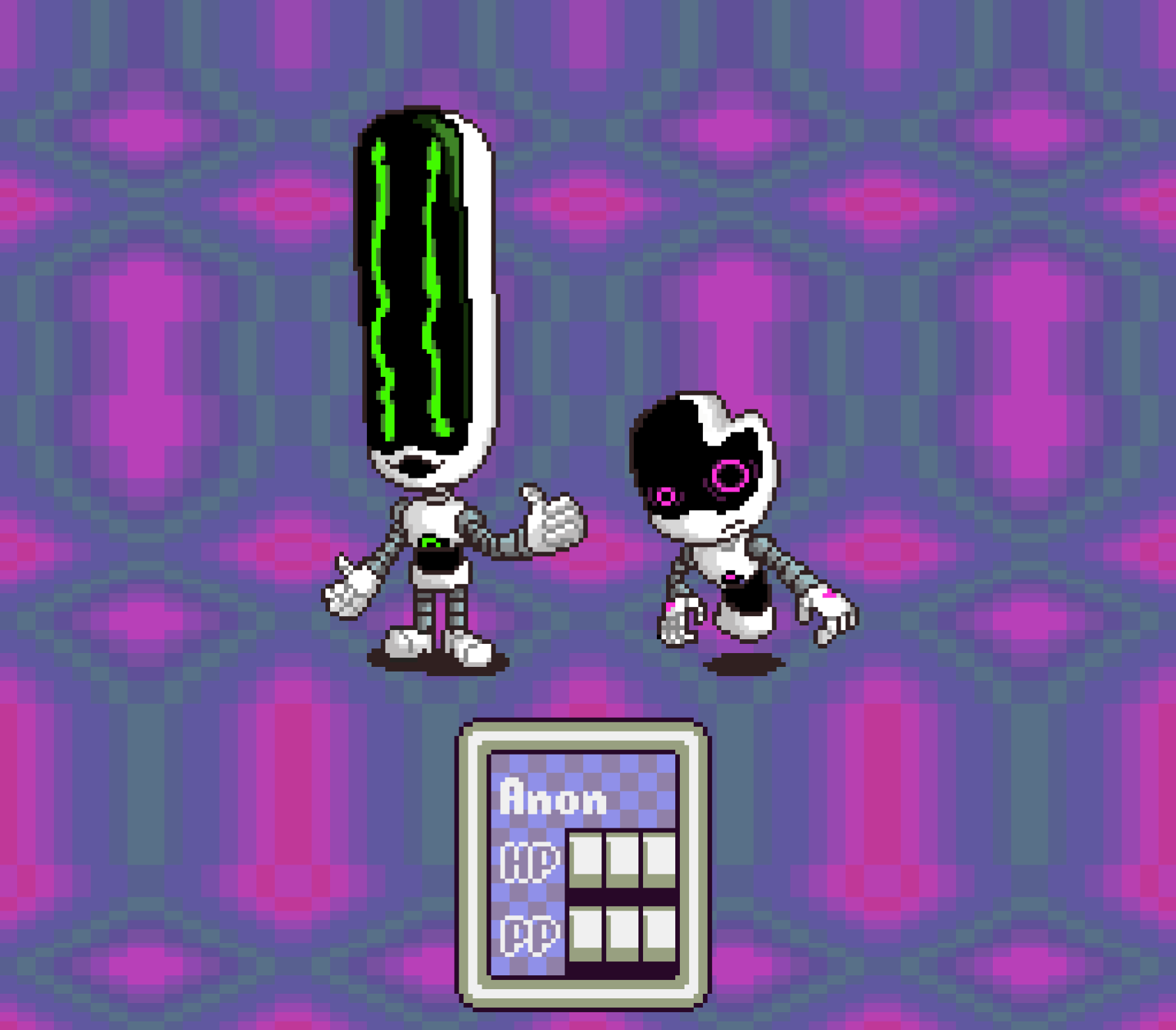 man, I don't remember this fight at all thought the weirdo drones vicious posted last thread would make for fun earthbound enemies so I took a crack at some pixel art
