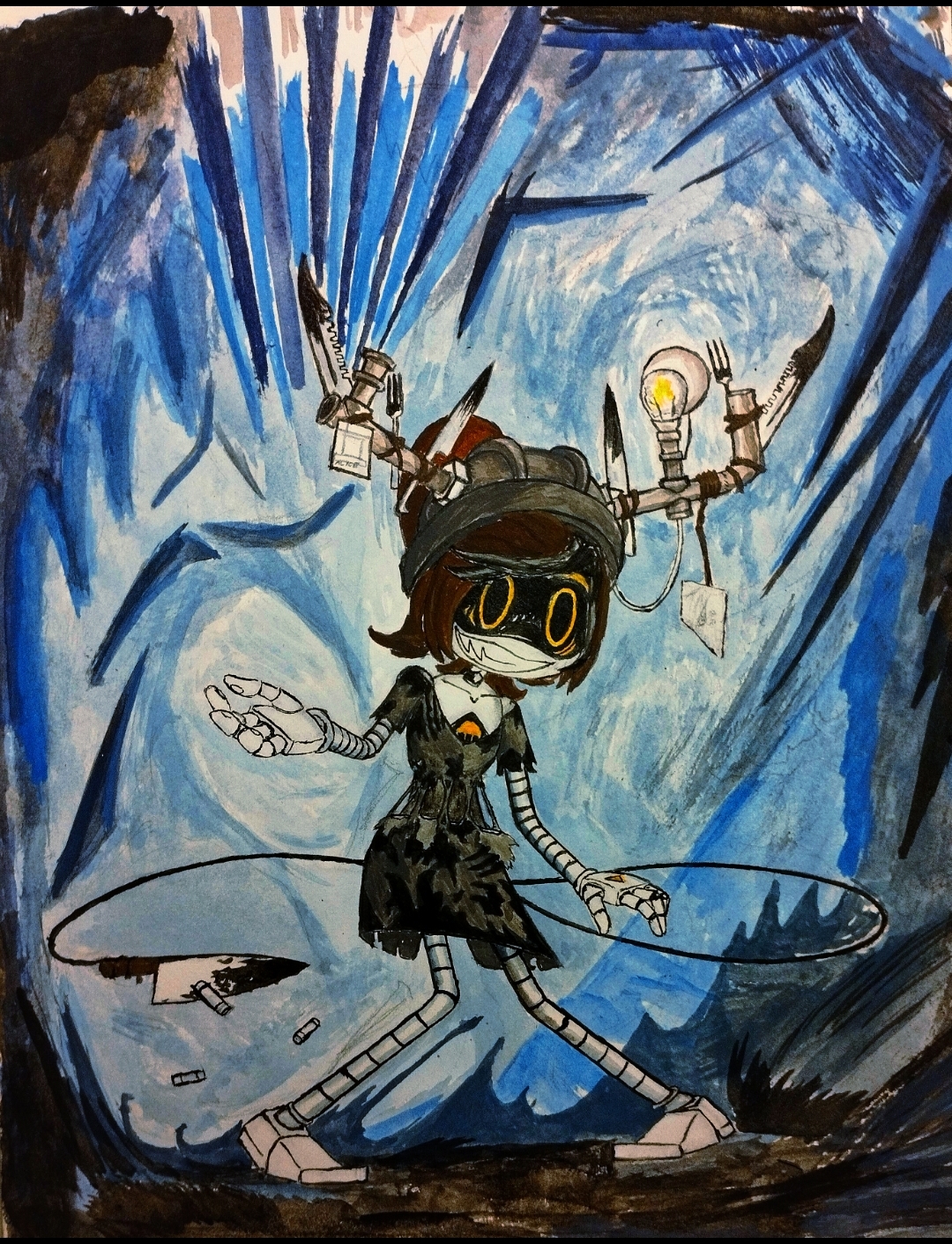 >It was Tessa or what wore her skin. >The body turned slowly, revealing a face that was a grotesque caricature. >The skin suit sagged in places, stitches of Solver tendrils holding it together like crude sutures. >Yellow eyes gleamed from sockets that were too wide, too empty and the mouth stretched into an unnatural smile and sharp fangs, lips cracking to reveal oily teeth. >"Oh, J," the thing purred in Tessa's voice >"You look so... tense. My industrial helper needs a hand?" >J's systems froze for a second, horror flooding her circuits. >This wasn't Tessa. It was Cyn, the Solver's puppet, mocking the woman it had hollowed out. >The voice shifted seamlessly, layering Cyn's childish lilt over Tessa's aristocratic tone. >"Don't you recognize me? silly drone." >" Shut up! What have you done, you freak?” >The mockery tilted its head, Tessa's long hair falling in matted, blood-caked strands. It stood, joints popping unnaturally as the Solver adjusted its fit inside the flesh. >It raised an arm, and the skin peeled back slightly at the elbow, revealing writhing black tendrils beneath. >A wet, tearing sound accompanied the motion, and J's sensors picked up the faint scent of putrefaction and the organs long removed, now just voids filled with malice. >Tessa's kind orders, her laughter during drone maintenance, the way she'd pat J's head like a favored pet. >Now, this abomination twisted those recollections into weapons. "Remember when I taught you to fetch, J? Fetch the tools, fetch the parts..." >The thing laughed, a bubbling choked sound that echoed Tessa's but ended in Cyn's glitchy stutter. >J lunged, her sword aiming for the throat. >She slashed deep, feeling the flesh under her… >But the Solver was just playing with her food. >Tendrils erupted from the wound, wrapping around J's arm and regenerating. >"Poor J," the mockery whispered, pulling her closer. >It reeked of decay...It forced J's faceplate against its chest, where the skin was thin and translucent. >Through it, J could see the Solver's core pulsing like a malformed heart, tendrils threading through empty cavities where lungs and ribs once were. >Whispers invaded her mind: >“You're obsolete. Tessa never loved you. Just a tool, discarded like the rest.” >”N was always her favorite.” >J thrashed, deploying her stinger tail to stab at the abdomen. It pierced the skin suit with a squelch, black oil gushing out, but the Solver only laughed harder, the sound reverberating in J's skull. >"Tickles!" Tendrils snaked up J's limbs, infiltrating ports and overriding her motor controls.>She felt her body betray her, limbs locking as that virus spread the visions of Tessa's flaying replayed in her visor, imposed with Cyn's sadistic grin, begging for help before the possession. >"You... can't..." J growled. >Her voice glitching as systems failed.>She tried another swing, but the Solver twisted her aim. The mockery leaned in, Tessa's lips brushing J's audio receptor. >"Shh, it's okay. Be part of the family." With a final surge, the tendrils constricted, crushing J's chassis inward. >The Solver was just too strong. As J's vision faded to static, the last thing she heard was Tessa's voice, soft and loving: > " J, Go to Sleep." >“[Callback ping…]” 2/3