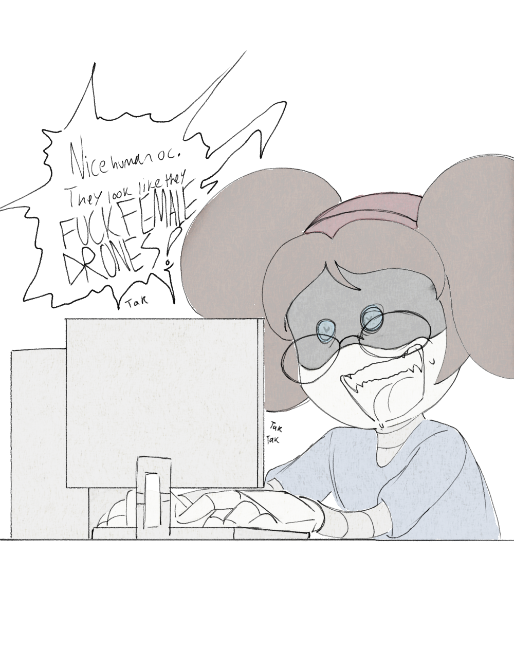i missed the earlier discourse cause i was eeping but to throw my 2 cents in; i feel like the whole concept of mutants would be better received if there were more monstrous ones rather than the primary frame of reference being pocketsteaks' monstergirls. i don't think there's anything really wrong with them but they're very tame in comparison to what would probably actually happen. like nobody has drawn someone having their skull prolapse out of one of their eyes when that's probably the fate of most people getting hit with mutagenic solver spooge. i think that and the fact that they gained traction during the buddyslop HFY era of the threads left a bad taste in everyone's mouth, which yeah i get that, that's understandable. fuck buddyslop. >Drones? ya they make my peenis hard