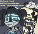 >>297447 Thought I had for a third reaction to Lizzy (mistakenly) thinking Doll's going to Ringu/Ju-on/The Ring/The Grudge her, in addition to "hysterical paroxysm of remorse as her 'taking a dead body to school'-level guilt boils over" and "quietly submitting to what she thinks is the inevitable": submitting quietly, but also handing the ghost in front of her her phone, to record her sickass J-horror death so other people can freak themselves out by seeing it. >"Could you... could you put it on my Instagram afterwards too, bestie...? Maybe text it to Rachel while you're at it...?" >"... [Lizzy, what the fuck.]"