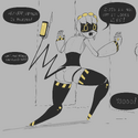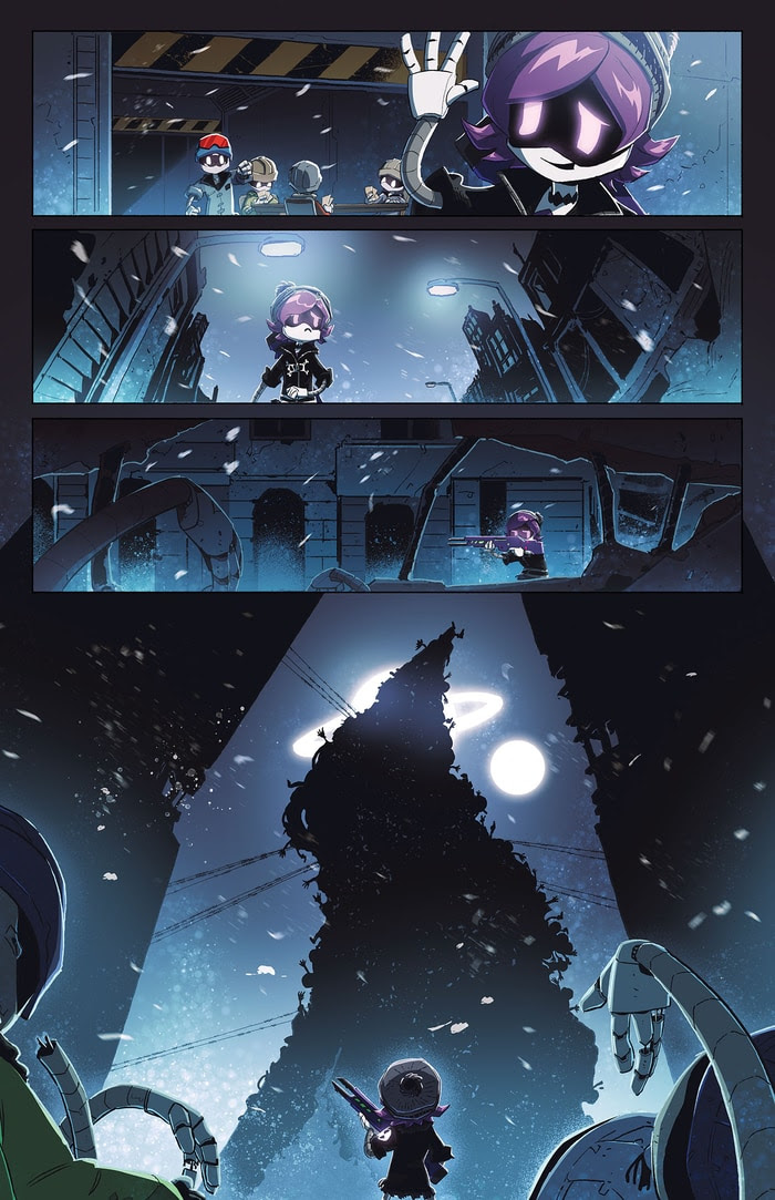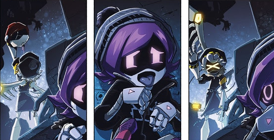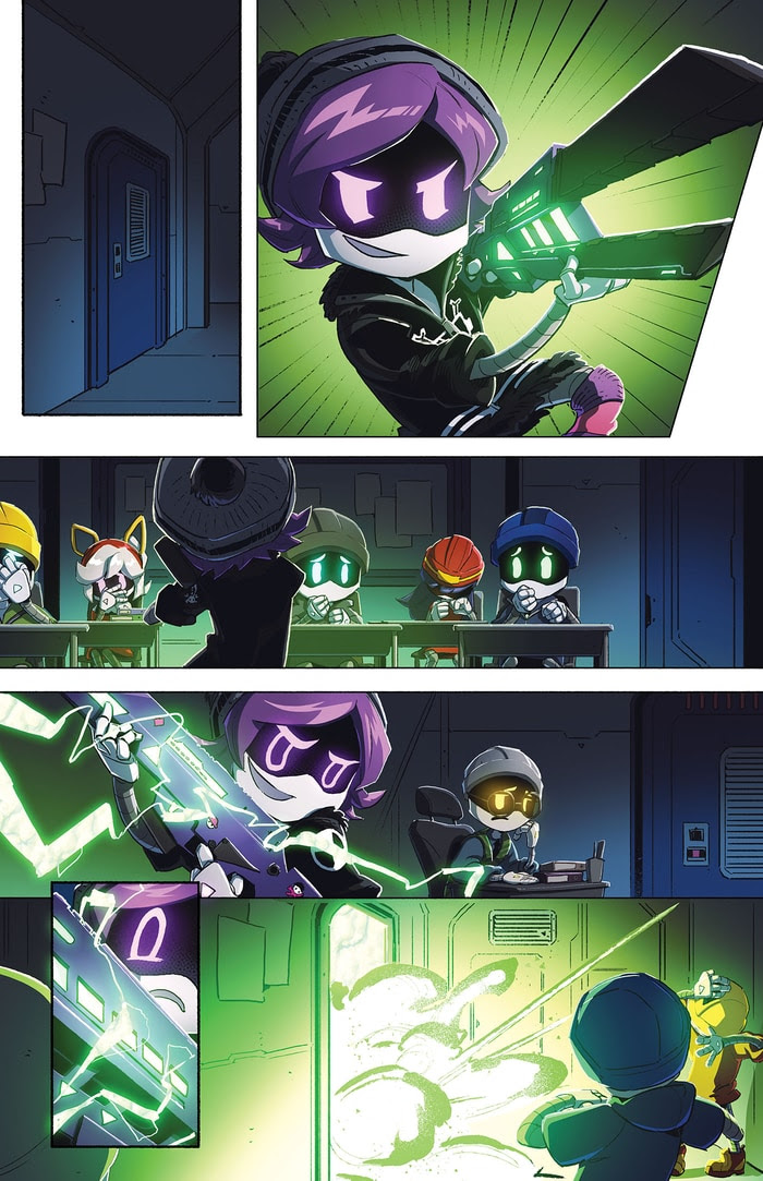 Unwarranted opinions on the comic from the asshole who drew >pic related >I really like the colors >it looks like the penciler is referencing mansizedmeatballs (the guy who does Glitch's MD promo art) style while the color artist is referencing the pilot specifically (Lizzy has lighter hair in the pilot) >I think this penciler has some learning to do with how they draw drone faces. It's their first stab at drawing drones, so I figure it's something that'll eventually be ironed out. I think any drone artist will tell you that it's deceptively difficult to draw certain emotions using the limited facial range of a drone. The show itself kept tweaking the facial rigs even into the final episodes just to broaden the emotional range more >the penultimate panel of >>299291 sticks out in a really good way. I just really like that panel lol > in >>299292 Uzi bleeds purple acid? I think they got confused All-in-all there's some roughness, but I figure as they go on, that'll be smoothed out by just having to draw this IP more.