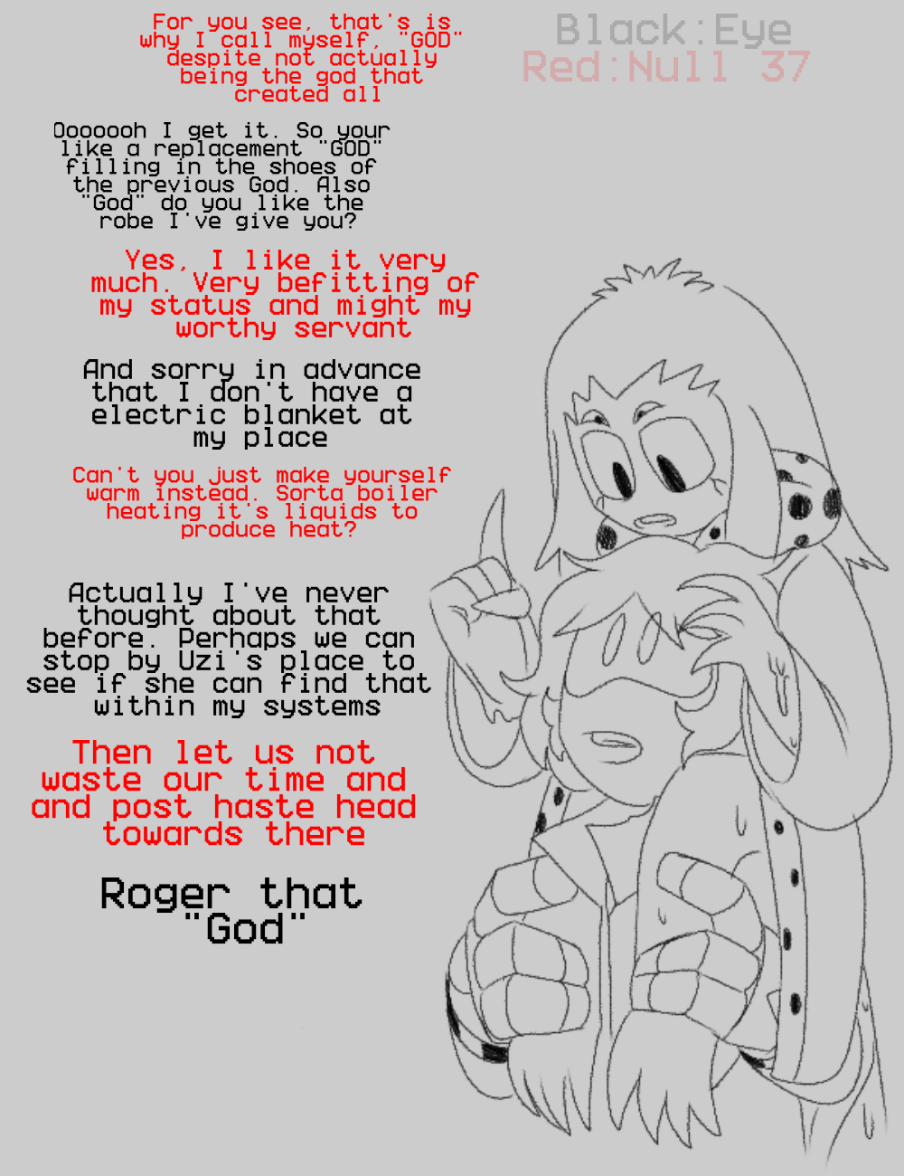>Be Uzi Doorman >God queen of Copper-9 >You’ve done it >You defeated an eldritch god and ate it’s soul >You claimed it’s power >You have it all >Respect >Your people adore you >You have love >You are the pinnacle of existence (….uzi….) >You can bend the universe to your will (….Uzi….) >No one would dare make fun of you any more (Uzi) >You… (UZI) >You… “UZI! Wake up! No defragmentation during lessons!” >You fell asleep in class >You let out a pained groan >You get up and stop laying on the desk >The teacher clears his throat and continues with the lesson >You don’t pay that much attention to whatever he’s saying >What you do care about is the quiet chuckles of you classmates >Oh how you loathe them >Sure their laughter lost it’s sting a long time ago, now more akin to needle pricks >But that just means it’s more annoying than painful >How you wish you could just rip them apart >Yes! You can see yourself tearing their bodies apart and discarding them on a pile that you dance on, yes! YES! YE… “Uzi, could you stop having pseudo psychotic episodes in the classroom” >BITE ME OLD MAN >The teacher sighs and returns to the lesson >You pay fleeting attention, indulging in the occasional fantasy >The bell rings and you go to your locker to get the books you’ll need for the next class >Of course it’s to high up for you, why do you keep putting stuff so high up? >Whatever, you stack the books you have with you and stand on them to reach the top shelf >Wow, why did you stash so much stuff in here? >Edgy Mangas, Manga style drawing guide book, performance reviews you didn’t show your parents, an advertisement about a rave party happening in the gymnasium this weekend >Who goes to stuff like this? They probably don’t even play any nightcore >As you search you notice something in the corner of your screen >Two of your classmates are coming your way, they are looking at you, they are talking about something >You know where this one’s going >They will kick the books from under you so you fall flat on your bottom plate >Like you’re going to let that happen >They’re really close now, they’ll try to do their prank soon >HAH! Watch this normies! >You’ll jump just as they are kicking the books and do a sick landing >And all that without even looking >They’ll be speechless >You smirk to yourself and begin to count in your head >1 >2 >3! >AHA >You jump as high as you can and prepare to do your cool landing >Nice try suckers! >Wait… >They didn’t kick the books >Well whatever you can just go back to… >As you land on the books your weight causes them to shift >You fall forward onto the locker >Before you can react you hit the top shelf with your head >The books fall from under you causing you to fall the other way and onto the ground >The back of your head makes contact with the ground and the world goes dark >Some time passes and you come to >Where are you? >What happened? >You begin to sit up >You’re in the outpost hospital… >Oh no >You try to get up before she comes but it’s to late >“Hiya Uzi! You’re finally up” >You see a drone wearing medical scrubs >Brown hair, ponytail, orange eyes >You see the butcher >You see Alice, the outposts head of medical >She begins to point a flash light at your face >You try to shield yourself with your hand but she slaps it away “Bear with me a minute sweetie, need to check if your optics are working, mind turning on diagnostics for me?” >You play along and display the diagnostics screen “Great, looks like all your dogs are barking” >Uhh thanks, you have to get going now “Wait a minute girly! Not done yet” >Ughhh, what is it? “Well, the girl that brought you in said you suddenly shot up and hit your head a few times” >Oh, that yeah… man you must have looked so stupid “So, any problems with motor controls? Maybe you’re getting phantom inputs? You’re taking proper care of your joints?” >She takes out a clip board and pen and looks at you expectantly >No you just… uhm… slipped? “You slipped upwards?” >She looks at you like your processor is broken >You admit that you tried to do something cool and messed up “Uzi you klutz, you should be more careful is trying to impress some boys really that important?” >What!? >You weren’t trying to impress anyone! >Certainly not those two guys that were walking past you! >Your screen lights up with blushes >Alice laughs “Alright, alright calm down a bit, I was just pulling your leg” >You grunt and get off the hospital bed “But really, be more careful I had to replace your screen, spare parts don’t come easy these days” >You begin to leave but stop at the sound of a baby crying >Oh, it’s him… >Alice sparks up