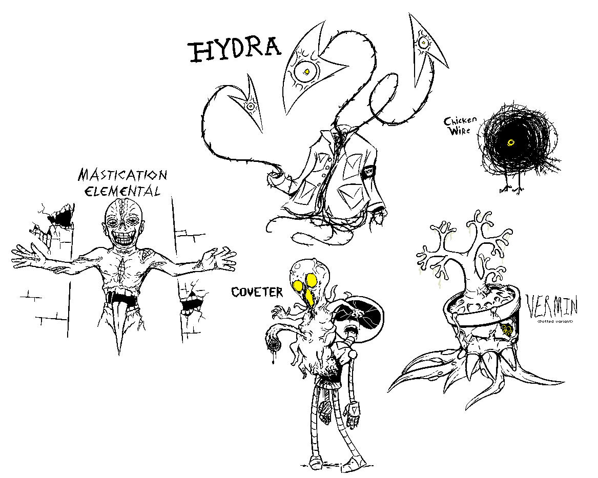 HYDRA- >Former member of Sulfur-6's military defense force. >Transformed into a tangled colonial organism made of barbed wire. Possibly infectious. >Hematophage. Primarily subsists off of stabbing victims with its spear-like heads, or ensnaring them with its body for prolonged feeding.
