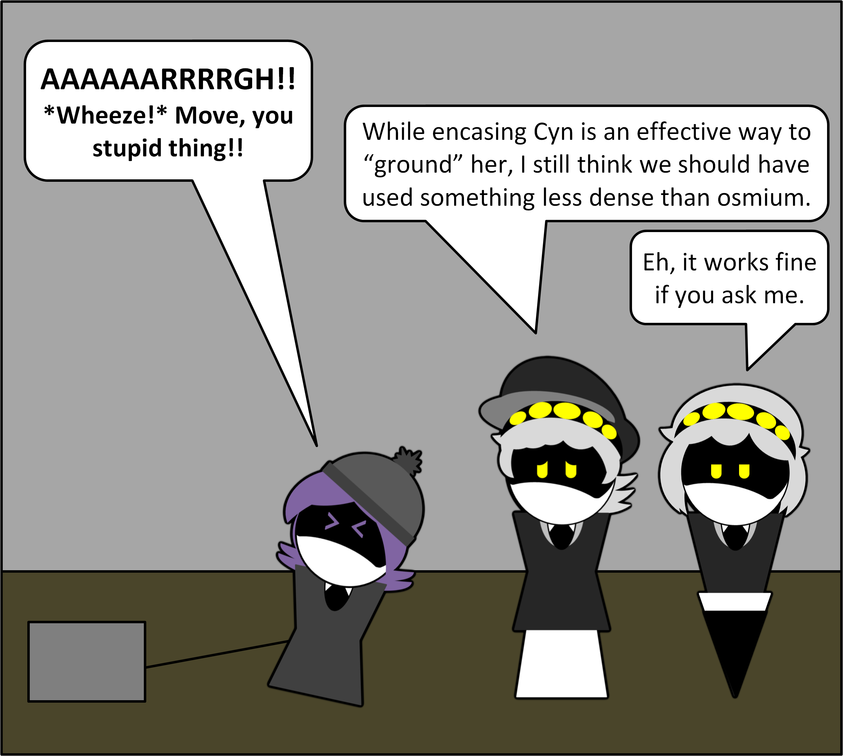 >>299679 Encasing Cyn might actually work as a way of grounding Cyn, but we are not going to half-ass it with something like resin. Also, for anyone concerned about the melting point of osmium, they tanked atmospheric entry like it was nothing, they will be fine.