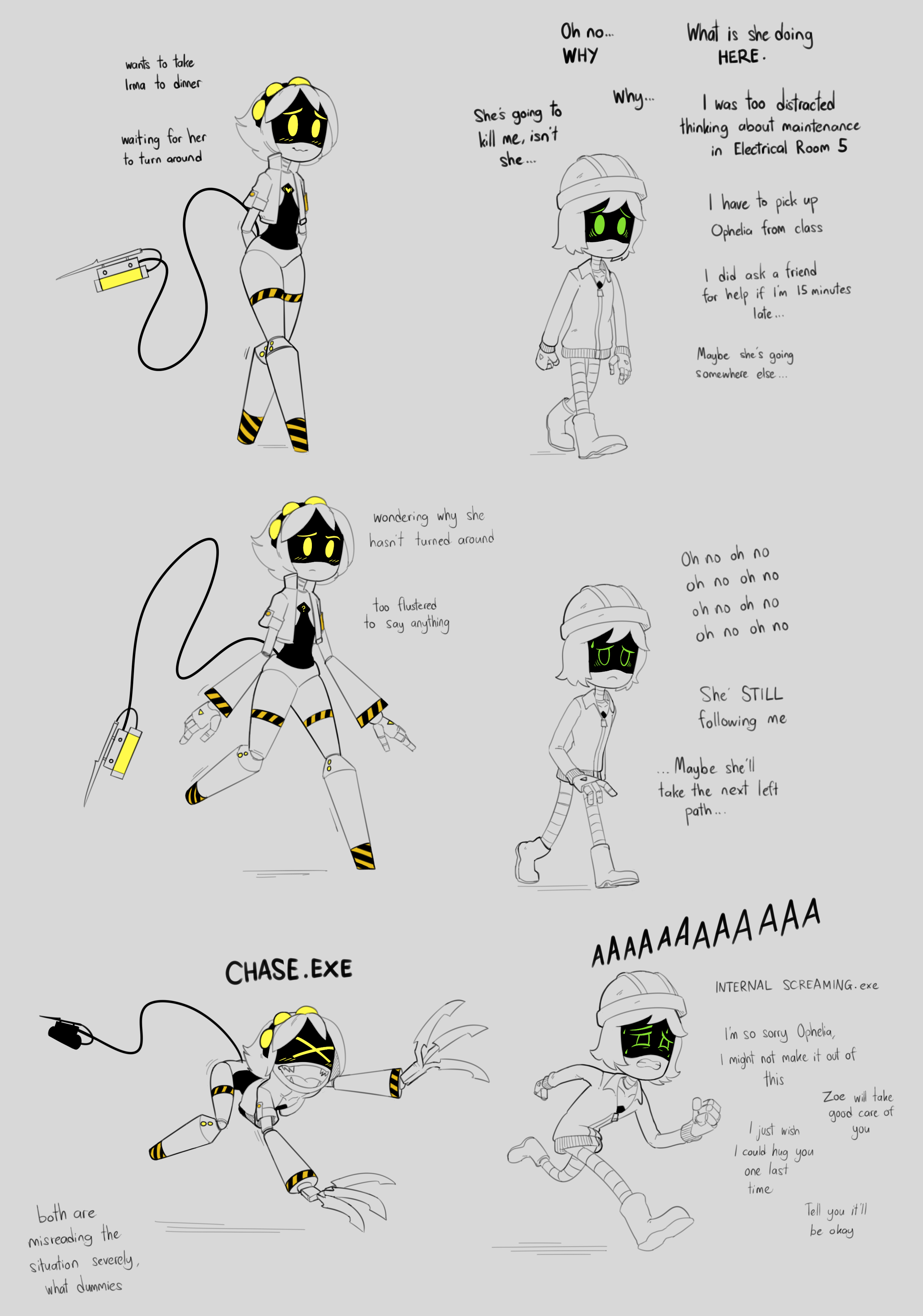 >>301629 >You create a new file >You start writing… >You jump up from your chair and walk away from the PC >You nearly relapsed >You need to stop thinking about humans >Humans… wit their soft warm hands… patting your head… >You shake your head >Snap out of it! >You’ll distract yourself somehow >The PC is out of the question >Too tempting >Maybe you’ll just read one of the books on your shelf? >...Book… >No books either >You lay down on your bed and cover your head with a pillow to muffle your screams of frustration >You begin to hug the pillow >It’s ok, you can just calm down and hug the pillow >Oh how you wish this pillow was a human you could cuddle with… >You throw the pillow across your room >You spend the next whoever knows how long in the fetal position rocking back and forth >You don’t need no human... >You don’t need no human... >You don’t need no human... >You don’t need no human man picking you up and princess carrying you… >Alright no you’re going to snap soon if you keep this up >Think Emily! Think! >What can you do to not think about humans? >Your eyes dart across the room >Eureka! >You have that small TV with a game console hooked up to it >You’ll spend some time playing games until you forget about your temptations >Alright what game to play… >This one has human protagonist… >This one as well… >This one has a human protagonist with robot sidekick >Damn it! >Of course you only have games that fit your tastes! >Oh wait, this one >Robots shooting bugs >No humans >Alright, this will do >You pop the CD into the console >Co-op only!? >Now you know why don’t remember ever playing this one >Oh, what now? >Wait, you could just invite Uzi to play with you >You’ll do just that yes! >You take out your phone and open the social media app >You see your profile picture >Ohhh… you’ve forgotten to change it… >You look at the drawing of you in wedding dress being carried by your human husband >Your mind goes blank except for desire and lust and you feel that you begun to drool >By the time you come to your senses there is a puddle of your spit on the floor >Squirming in shame you make haste to send a message to Uzi >”Hey Uzi, wanna come over to my place?” >You look at your phone intensely waiting for a reply >Uzi is awake by now right? >It’s half past ten, you doubt someone with her fiery personality is a sleepyhead >A few minutes passes, that’s alright you don’t expect an immediate response >10 minutes has passed >Alright she’s probably busy with something >Another ten minutes >The intrusive thoughts begin to worm themselves back into your processor >Maybe she’s helping her mom with something? >Probably that, you shouldn’t get impatient >It’s now eleven >You use all your mental fortitude to keep it together and not give into your urges >Your eyes being to drift from your phone to your PC >You start to slowly give in and move towards it >You are in a fugue state, not fully aware of what you’re doing >Once you’re about half way to your desk the sound of a message notification shakes you out >Uzi responded “Sure, sorry for the late reply I just woke up” >You shoot your arms into the air and cheer >Now you just need to wait for her to get here and not lose control over yourself >To that end you focus your attention on the TV displaying the main menu for the game you wanted to play >You dare not look away, you read the title over and over again, you watch the animated background, you enter the settings menu and check the controls, hell you even read the in game manual >By the time you’re in a trance with your head basically touching the TV you hear a knock on your door “Emily honey! Uzi is here to see you!” >You sprint to the door and slam it open >The ferocity of your moves scared your mom a bit >Uzi is standing next to her, dressed the same as yesterday she even has the backpack >How many of the same hoodie and socks does she have? >She’s not constantly in the same clothing right? >She did sleep in her normal clothes… even had the beanie still on… >Nevermind that, you thank your mom and pull Uzi into your room >You close the door and tell Uzi to make herself comfortable “Hi Emily, sure I’ll just get the book out” >Huh what book… >She takes her backpack off and begins to take out the book from yesterday >Why did she take it with her!? “What? I thought we were going to continue our study” >You just wanted to play some video games >Uzi looks bewildered “We have a tome of ancient forbidden knowledge and you want to play games?” >Yes? >And you really don’t want to have anything to do with that book, it’s full of temptations >Uzi’s confusion continues