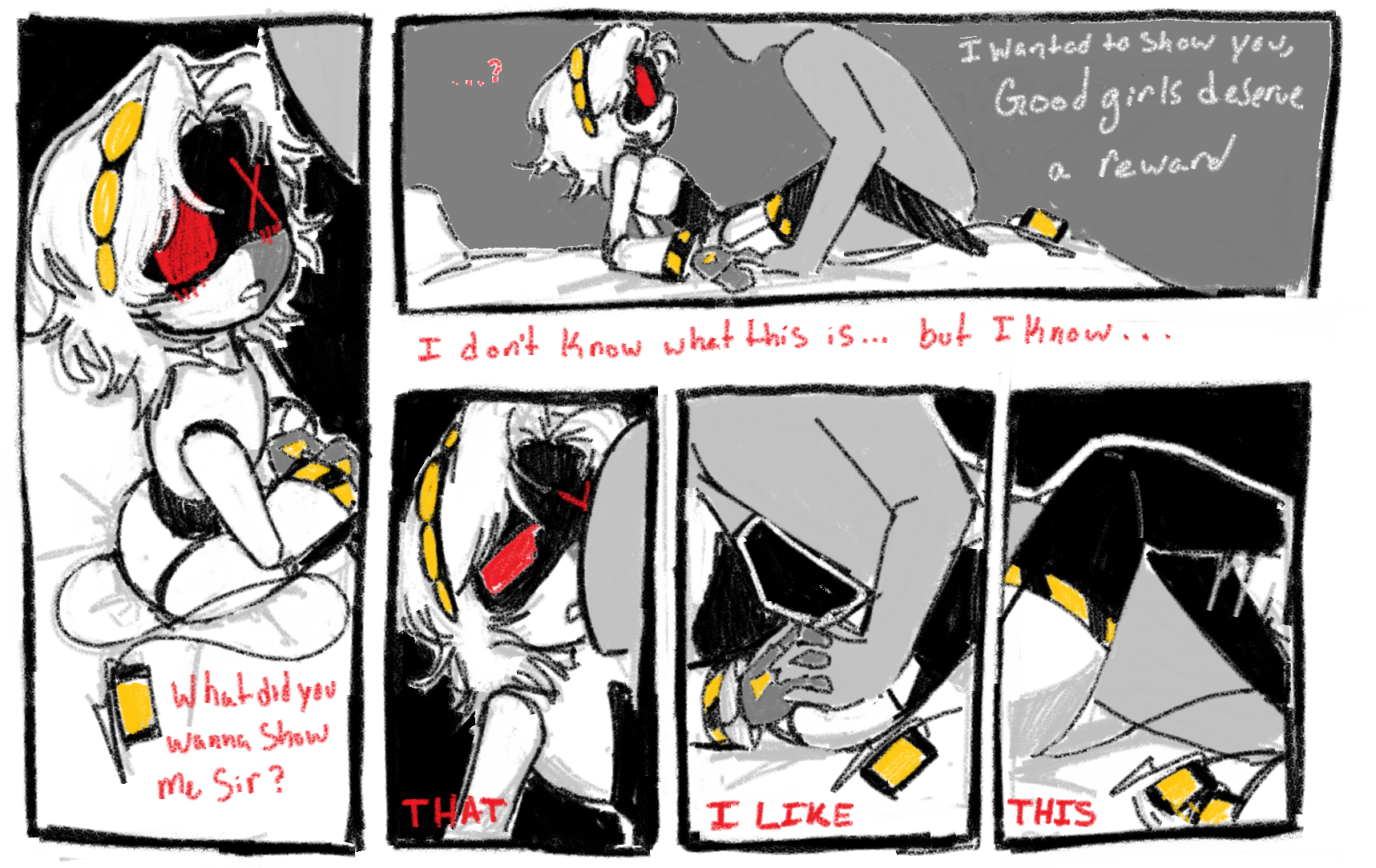 >>301630 “Temptations?” >She looks at you funny while holding the book >Her eyes focus on you and she smirks >Looks like she came to some form of revelation >And not the kind you like by the looks of it “Oh~ Emily~ You have second thoughts about learning the secrets of this book?” >Yes… “MUAHAHAHA, OH it’s too late now! We have already had a glimpse! We have no choice but to continue, our souls are already forfeit” >Quiet down or mom will hear that! >And it’s just a book it cant steal souls! “Aw come on let’s just read it” >No! You will not! >You pass Uzi a controller and pick one up yourself >Uzi rolls her eyes sits down next to you and places the book between you two >She makes no attempt to hide that she will tempt you >You will stay strong! And you wont let your friend fall to the contents of this corrupting tome! >You start playing the game >You get through the first few levels >It’s fun, but you notice Uzi is sometimes playing bad on purpose >Running ahead and getting herself downed >Whenever she waits for you to revive her she starts flipping through the book, oohing and aahing at the things written inside >Uzi’s actions do make you think about the illustrations even if just for a moment >You can’t let her do that! >You begin to play as good as you can, killing enemies as soon as they appear and sticking close to Uzi so she doesn’t have time to pick up the book while she’s downed >This seems to be slightly annoying for her “Wow Emily, you’re really good at this game huh?” >Apparently yes, not the genre you usually play but still you’re doing well >Uzi tries to get downed a few more times >You either revive her as soon as he goes down or kill the enemy before they can damage her >This is working! Focusing on the game is making you ignore the book even when it’s so close to you! >The game has a section that is a classic Akira elevator crescendo >At least that’s what Uzi called it >Uzi starts smiling when the elevator starts >Umm that’s not good you think >She stands near the edge of the elevator >After the first wave of enemies spawns she back peddles and falls of the elevator, dying instantly with no way to revive her “Oh oops! Silly me!” >She places her controller down and picks up the book >She turns to face you and lays it out in front of her so that the contents are in your peripheral vision >This wont work on you! >You’re alone on the elevator, the game will require your full attention to not lose >As you dodge attacks, throw grenades and shower the space bugs in a hail of bullets Uzi starts to read the contents of the book aloud “Oh wow, you can detach someone’s arms and legs with just a screw driver” >She raises the book up slightly so more of it is in your view >You see the picture of a drone with no limbs >Your eyes glance to the text below it “Whenever a drone is rendered immobile and unable to manipulate objects one should not leave them alone for any length of time to avoid any psychological damage to their programming, for best results the technician should carry the drone with them until the limbs are reattached” >There’s a picture of a drone being held by a human >Your mind drifts >You imagine yourself being held by a human, being kept close to his chest >You stop fantasising just before you start salivate >You turn the sound up so the sounds of gunfire and insects dying drowns her out and refocus on the game >Soon after mom knocks on your door “Honey can you turn that noise down? It’s really loud!” >Drats… >You attempt to concentrate on the game >Uzi continues to relate what she reads “Huh, apparently the humans used to place some kind of ward on the drones while they were still around, they had some kind of ointment and applied it to their chassis, probably a way to keep them enslaved” >She pick the book up to show to you >You don’t look >“Sorry this part is hard, and the last checkpoint is far away” >She pouts and keeps the book open >You ignore her and press on in the game >The elevator stops, you kill the last enemy >The next checkpoint triggers and Uzi respawns >You cheer and swipe the virtual sweat of your brow >Partially because that fight was hard as balls solo and because Uzi can no longer tempt you >Uzi places the book down and sluggishly picks her controller back up >Your hands are shaking from the stress and you drop yours >You turn and pick it up… and you get another glimpse of the book >Oh those images… >A human running their hands across a drones chassis, smearing some kind of substance across it >And then they use some rotating machine >Oh the drone in those pictures looks so happy..