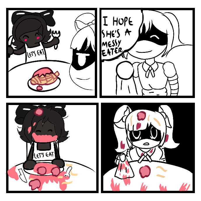>>303479 >Tessa and Cyn watching old Sailor moon VHS tapes (Cyn is chained up cause timeout) >She sees some monster get blasted by a lazer and knocked out >Eh, its cool but unrealistic, not enough gore, but she could do it better >Years later >Queen of Loving Flesh fires a lazer at someone, ripped in half instantly, their bones reshaping to stab at anyone around them >Yeah this is better, also my Magical Girl does better Poses