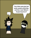 >>302826 Someone pointed out to me that Tessa’s/Cynwalker’s dress was black and blue in another piece of merch, which is a convenient opportunity to stretch this joke out. I would have preferred to make the ribbons blue to actually have contrast between them and the dress but I suppose I got to stay on model.