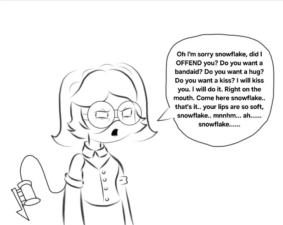 >>308354 >Adding to her suffering, the wretched demon who took every single thing from her. >Was now jabbing a robotic finger into her sides. >“Poke. Poke. Poke.” >If this was Tessa when she was alive or even the Tessa in the first few days here. >She would have brushed the menace away snarling. >But that was in the past. >When Tessa cared about personal space. >When she cared about anything. >[ANNOYED SIGN] >"Wakey Bakey Tessa, stop pouting." >Tessa didn't budge, nor response when she felt Cyn dragging her through the snow. >"It's Christmas, you will come celebrate with me." >"Your presence will not be discarded."