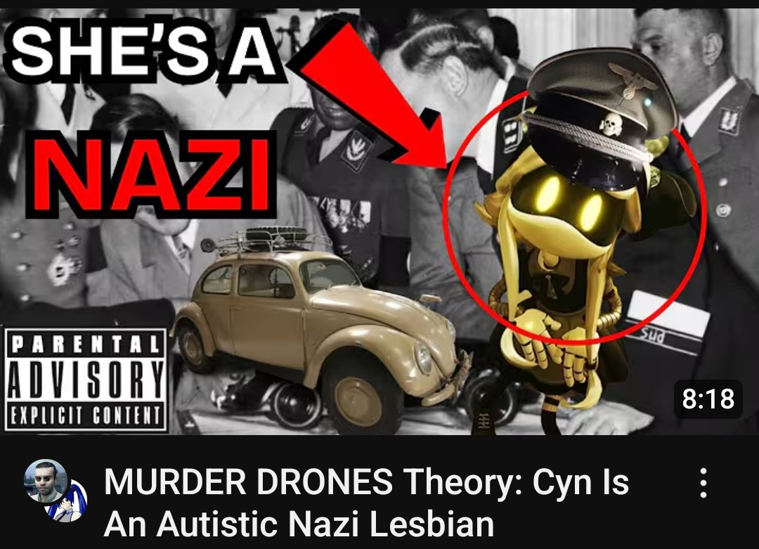 >>308450 Because they're retarded strawman questions taken in bad faith. >This anon made Pavo? Obviously no one thought that's what I was implying. I'm rephrasing his own question to posit an explanation as to why it's killing the threads. Maybe I shouldn't have included "my" to make it more clear. But maybe he did, anyone can post as Anonymous. it doesn't matter. >drone ocs have nothing to do with the drone show? See pic related. Murder Drones? >i dont recall pavo being characterised as particularly stupid either It's an obvious figure of speech but you can't sit here and tell me that the gay fetish bimbo fat ass OC is primarily portrayed as an intellectual. Go ahead and let me know if any of those posts give you that impression. Here's some more for your consideration. >>305950 >>305950