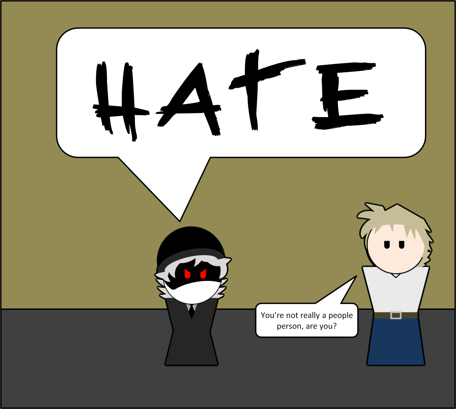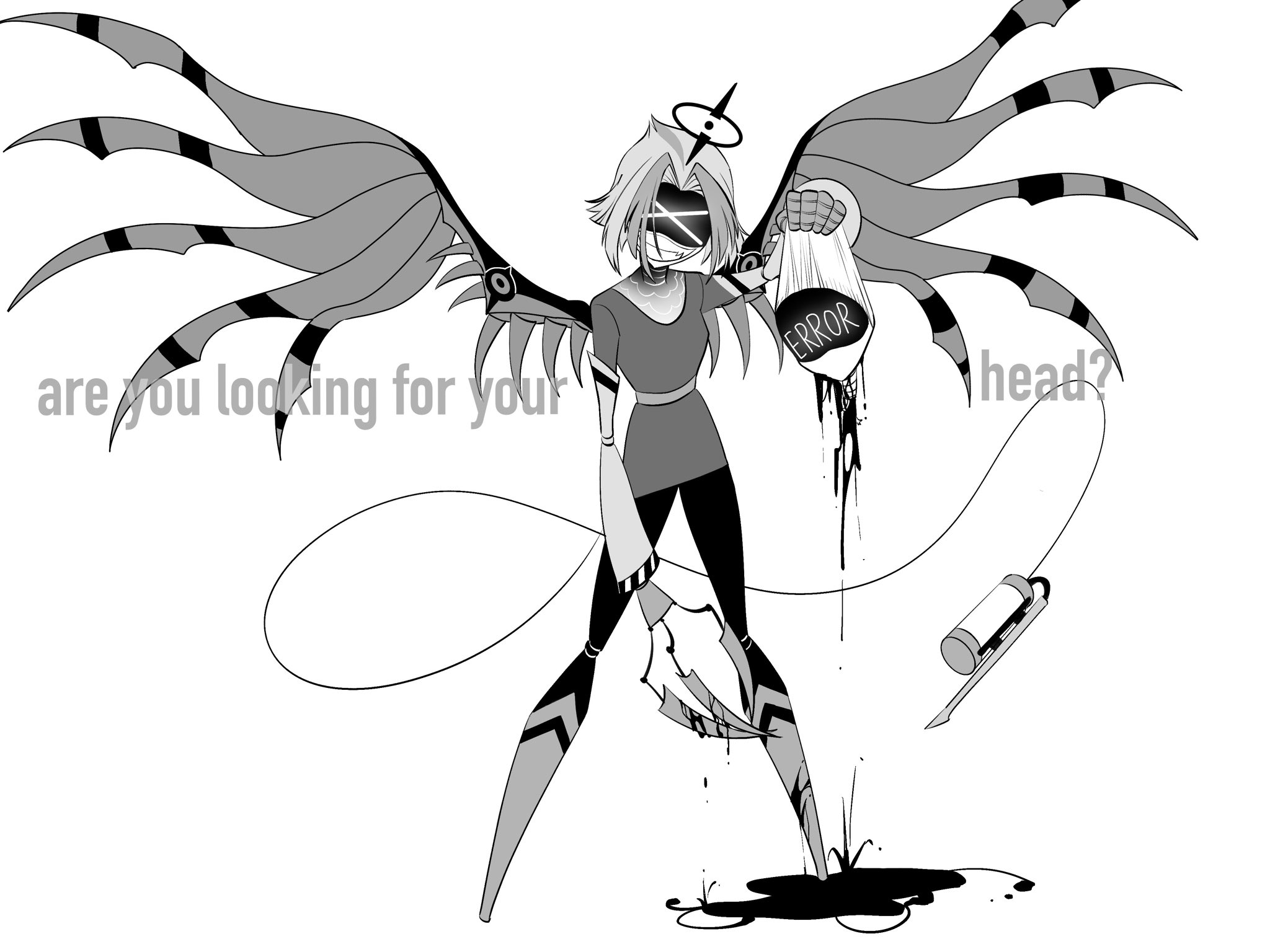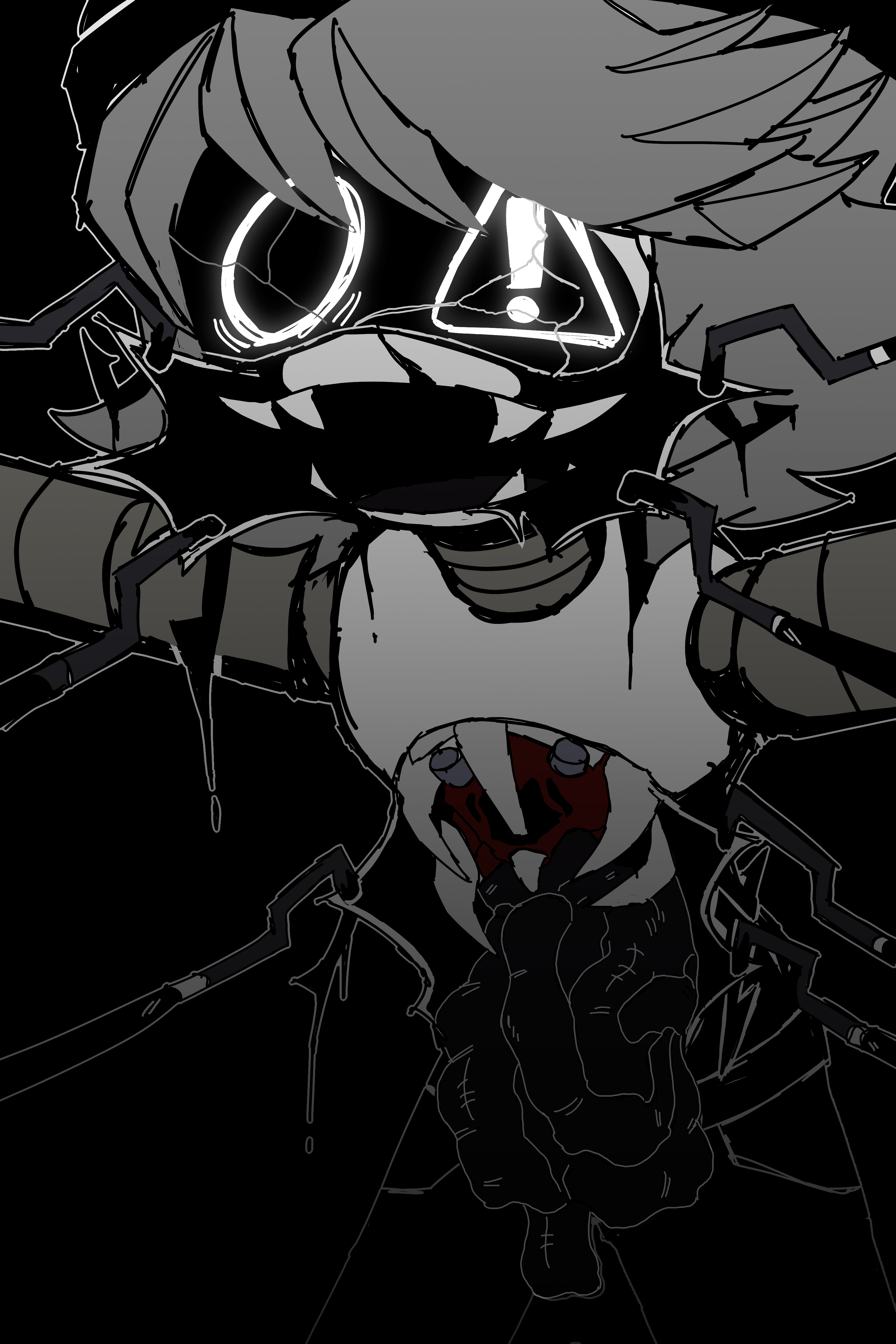 >Things were not looking good. >"You think you can you mock me? Mock *this*?" >For the first time since you had met the drone, you'd seen an expression other than resting bitch face on 'his' visor. As if the telltale yellow cross and sinister grin was a welcome sight. >It didn't take long before he had your other hand in the same hold with an added threat of scissor fingers. >Errant twitch followed his stare into your soul. >"Of course you would. Why wouldn't (you)? You don't understand this game." >You understood plenty. >You went for the kick. >.... >Just as feared, it missed. One moment the scene had human above drone. The next it span backwards and the roles reversed to usher in a dull pain in your spins. Instead of looking down at your assailant... >"You haven't seen it. You haven't seen me. REALLY seen me. I hate it." >Your assailant was looking down at you. >"I hate thinking about you. But I can't stop it. It's a pain in my ass." >Maybe finally that lump building in your throat would let you swallow it. >"I want you to see me. *All* of me. So maybe I can stop thinking about you and your stupid face." >Hot breath and saliva made a weird combo dragging itself across your face in waves of a slick tongue. >Now, you weren't gay as far as you knew, yet the direct manhandling from the prettyboy drone and the impending threat of murder-rape may have been sending mixed signals to your brain. >Made worse by their dishevelled attire. A loose shirt and an exposed collarbone make for interesting spectacles. >You'd have said something. One last protest before death. >But. >"Tonight." >Wings of iron outstretched. >"You" >"Are" >"M i n e." >And fangs of plasteel bit downward.