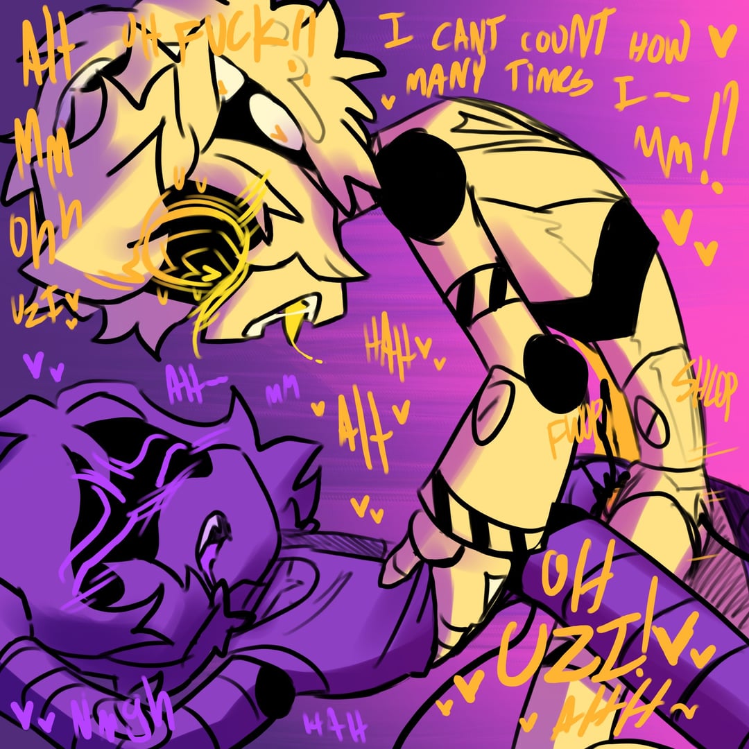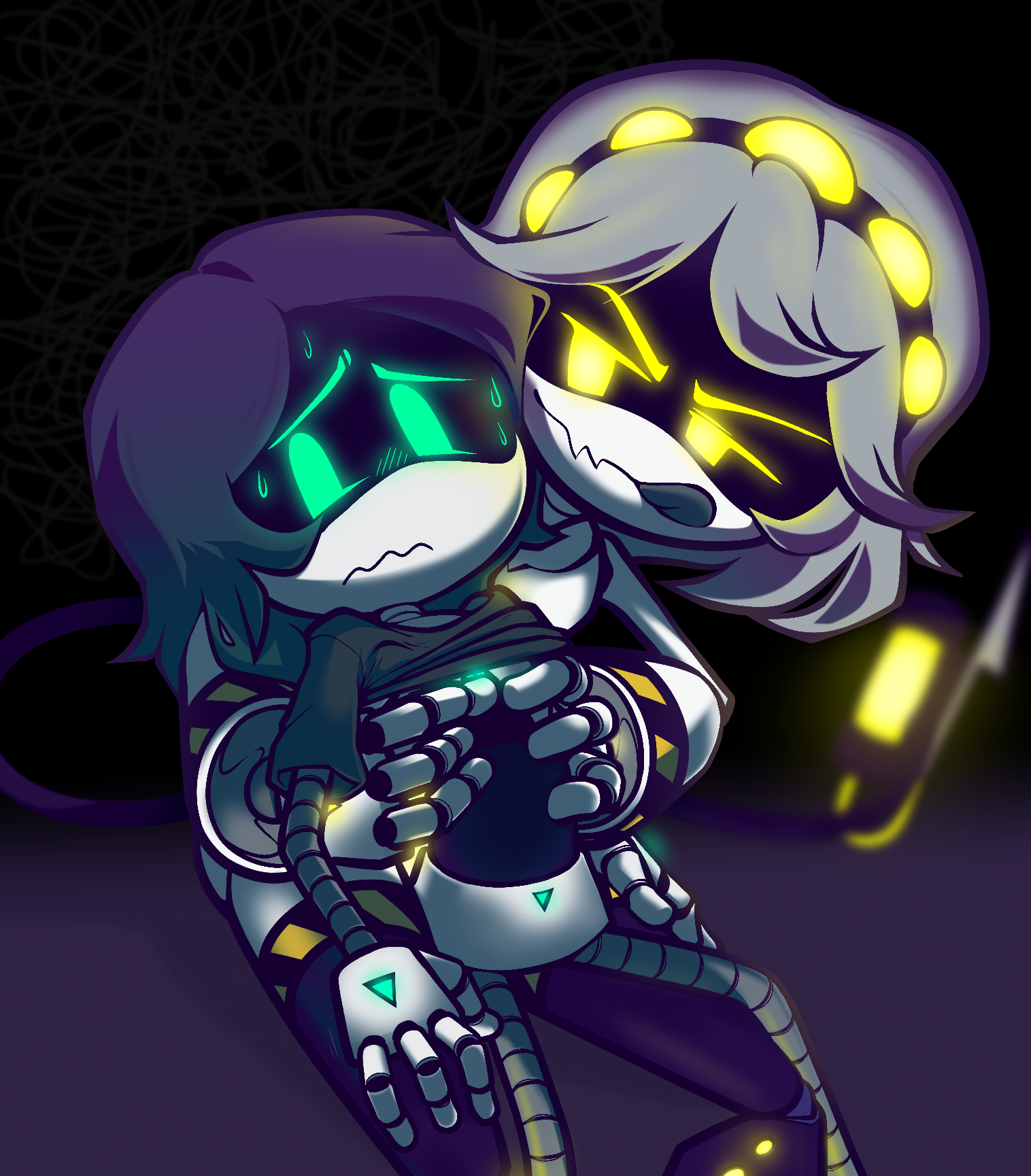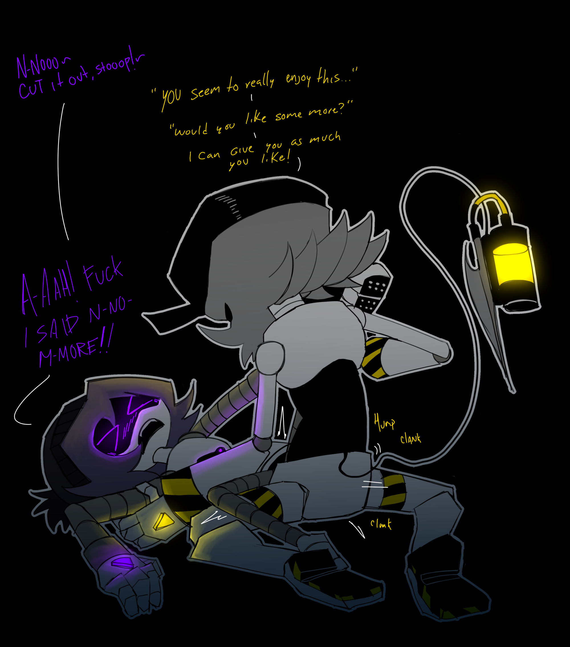 >N tries to climb into her vent, as is his custom >Finds a thoroughly overheating Uzi unconcious and her bedroom completely oil splattered >Freaks out and refuses to let her leave his side for the next month >Uzi is torn between comforting him and the shame that would come from revealing the "why" of that particular night >Especially given that doing so would mean explaining things to her now equally worried parents...