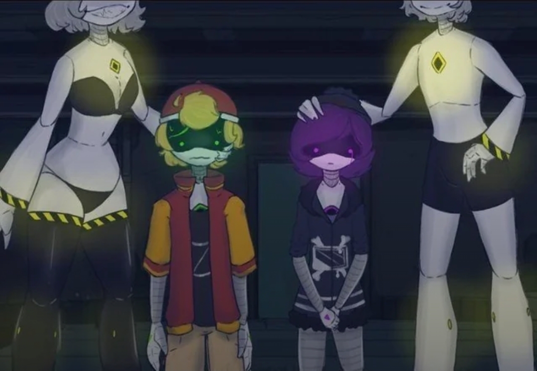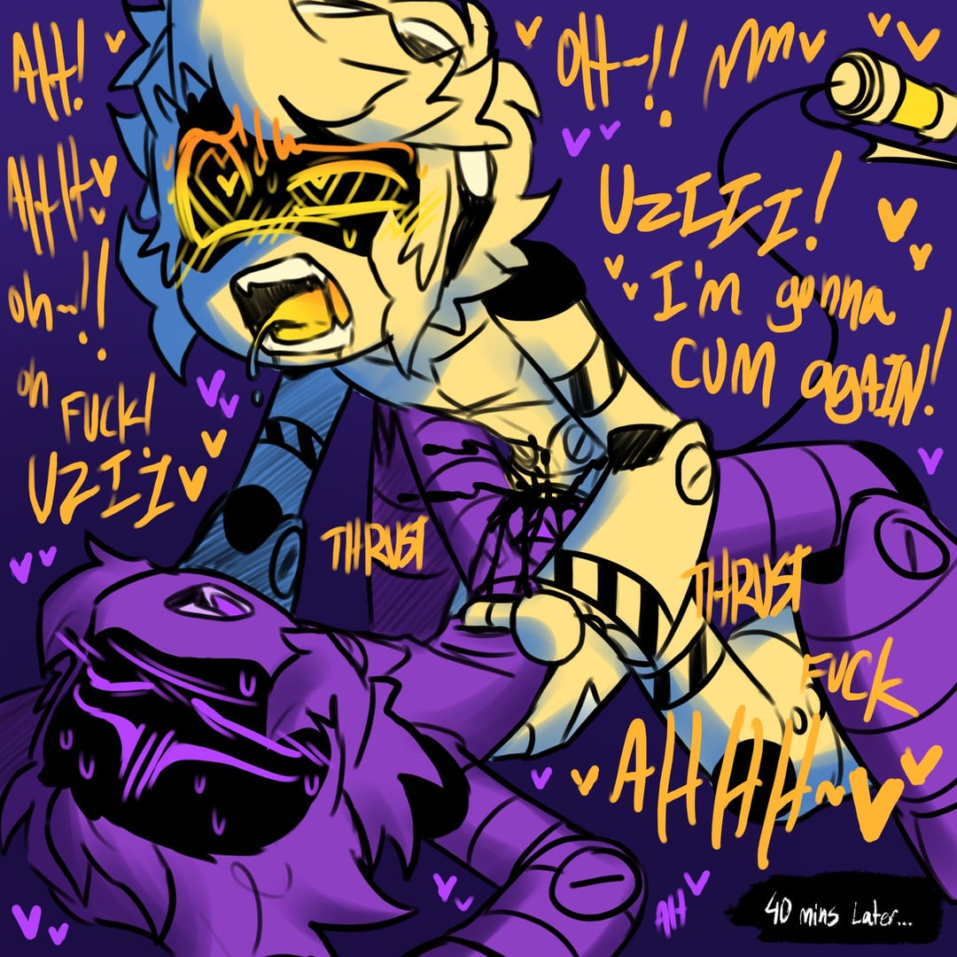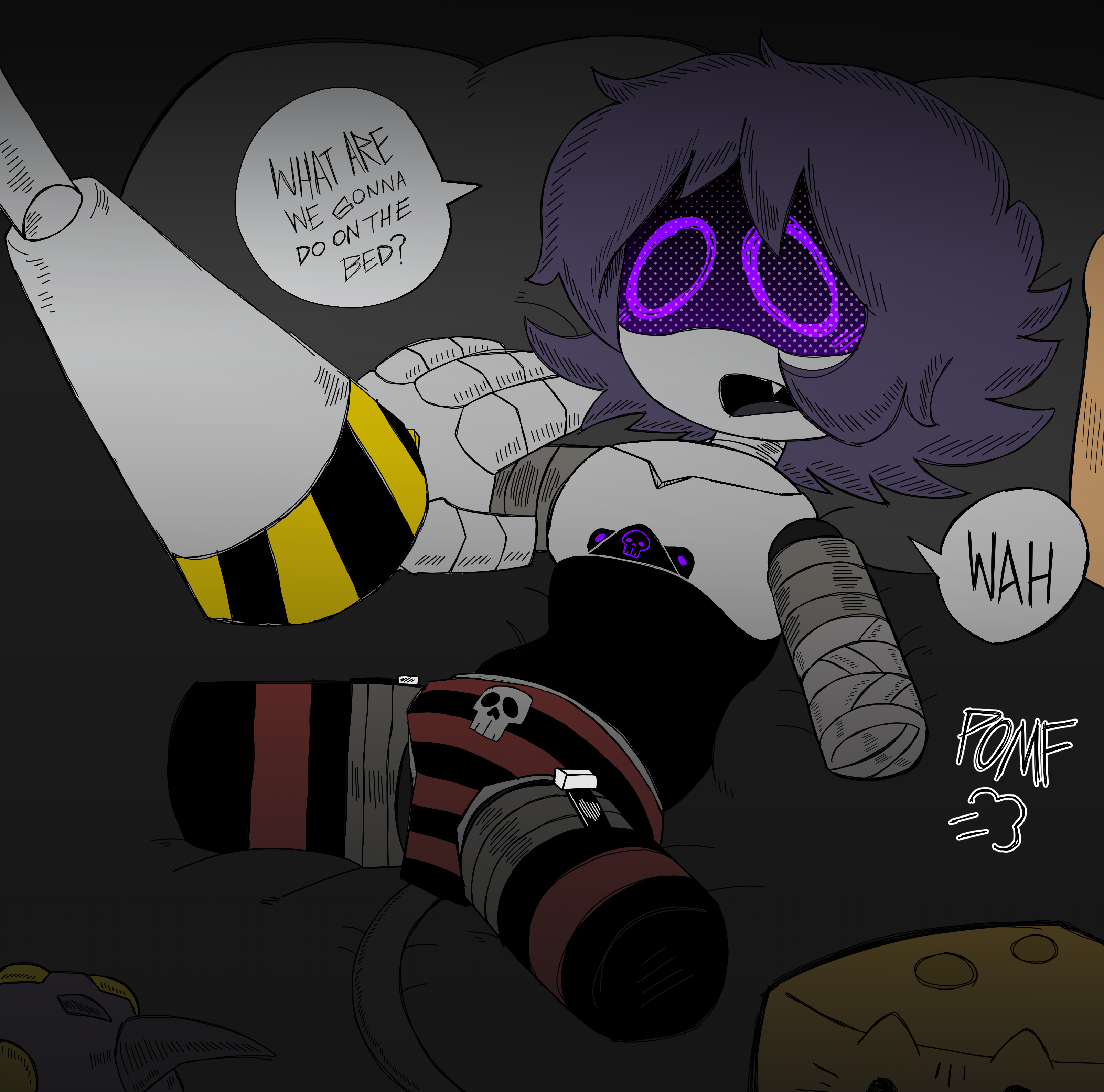 >N tries to climb into her vent, as is his custom >Finds a thoroughly overheating Uzi unconcious and her bedroom completely oil splattered >Freaks out and refuses to let her leave his side for the next month >Uzi is torn between comforting him and the shame that would come from revealing the "why" of that particular night >Especially given that doing so would mean explaining things to her now equally worried parents...