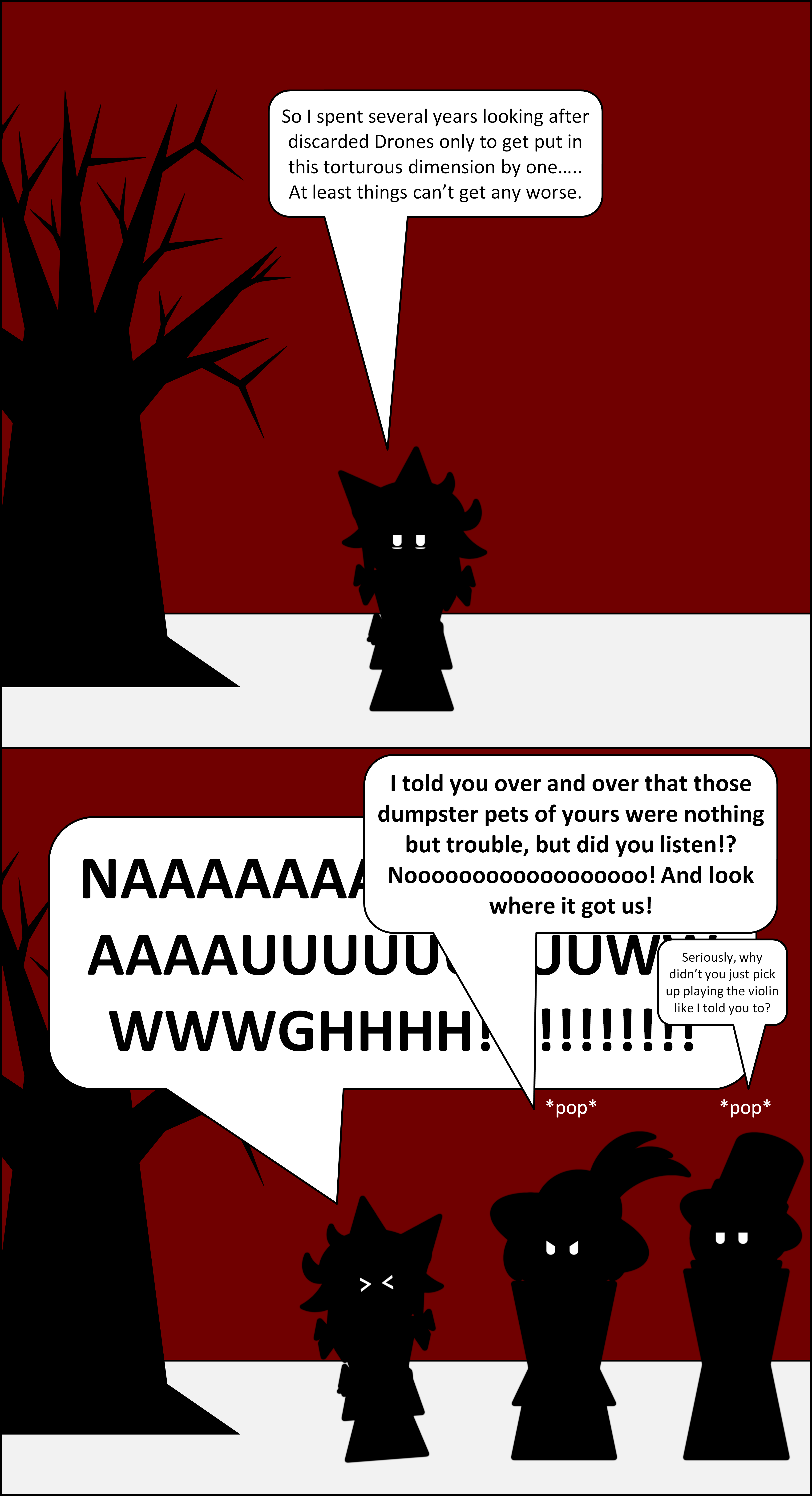 >>306109 >The next day you arrive at school a bit earlier than usual, your dad woke you up when he was going to work >He was in more hurry than usual >Zen is also here early >She’s sitting at one of the benches in the corridor >One of the ones far away from everything else >You used to sit there to get some alone time… >Zen notices you and her screen lights up >”Hi Zen” “Hi Uzi, where’s Emily?” >”She’ll probably be here in a while, the class starts in 15 minutes” >You sit down next to her >”By the way do you have any plans for the weekend?” “What’s that?” >”You know… the two days off we get when there is no school? And when you only sometimes get time off when you work” “Oh… oh! Like the times when my manager would be gone after every friday….” >Her breathing becomes distressed and her screen begins glitching, her hands go limp and she begins to look straight ahead >”Hey, uhhh... Zen…” >You place your hand on the back in such a way that you could pull back if she tries to bite you again >The sudden contact makes her jump um and shriek >She looks around with fear and confusion “I… uh… sorry” >She sits back again >She covers her head with her hands “Uhm…. I’m not used to having time off, I don’t have any plans, I didn’t know I needed too” >”What? I wanted to ask if you would like to hang out with me and Emily” “S-sure… Thank you” >”Great! I have something really cool in mind, we’ll just have to get Emily on board” “And what is that?” >”Oh! Do you remember that book we had? Well on page 333 there is a section that…” >Before you can properly start to talk Zen’s head off with your arcane knowledge, someone rudely interrupts you “Sup freaks, you plan on diving into tunnels any time soon?” >Your frown and turn your head >”Lizzy…” >Oh great it’s her again, guess Doll isn’t at school right now so she can’t swoon over her >Zen leans out from behind you “Um.. hi?” >Lizzy gives you two a shit eating grin “Hi you you little mole drone” >Zen doesn’t know how to respond >”Hey! Shove off!” “Ohhh, defending your own? I’m glad you finally found someone as weird and batshit as you” >”What are you on about?” “You already forgot your little escapade yesterday? Oh you two made quite the ruckus… crawling through vents, yelling nonsense while running into people, oh the recordings are so funny” >Ah… damn it >Of course people recorded that >Lizzy moves closer to Zen “So what is it going to be mole girl? You’re going to be as much of a nuisance as the purple one? Maybe even more? I mean Uzi over here is quite something, but I heard you even crawled on all fours at one point…” >Before she can continue you get up and get in her face >”Leave her alone!” “What? Afraid your fellow vent crawler can’t take a bit of…” >You push Lizzy >”Bite me! We both have had enough of you!” >She stumbles back a bit before puffing up “Huh… The freak is uppity and violent…” >”Oh go cry to your dad like you usually do!” >She turns her head to the side and crosses her arms “Hmph! At least my dad…” >Before she can finish something catches her attention >She gives you a wide smile and begins to speak very loudly for some reason “I’m really surprised Emily wants to spend time with you, maybe she believed your ramblings about being a witch and thought you put a curse on her? Anyway I TRIED, see ya later~” >She walks away >Why did she say that last part so loud? >Tried? >Tried what? >You look in the direction Lizzy is going >Doll is standing at the end of the corridor >Ah, it was one of her plans >Great she made Lizzy attack Zen as well >Real classy >”Hey Zen?” >She doesn’t respond >You look at her >Zen looks like she’s about to cry >”You ok?” >Zen looks up at you “Uzi… am I a freak?” >”What? No! Don’t listen to a word Lizzy says she’s full of shit” “But we did do run around like mad yesterday… Or at least I did… and you had to chase me” >”Oh come on, who cares?” “She said people were recording…” >”And so what if they did? They normies recorded me doing dumb stuff many times” “Probably nothing like what I did…” >”Oh believe me I did some embarrassing stuff” >She cheers up a bit “Really, like what?” >”Uhh… uhm… There was that one time I was siting funny” >Zen immediately returns to a sour mood and her head sinks to the ground >Ah damn it >Alright Uzi, swallow your pride she won’t think lesser of you >”There was one time where we were doing a group project…” >Zen looks up again >”… There was no one who wanted to do it with me, and when the teacher started collecting our work I hid in a trash can” >Zen giggles to herself >Hey! Don’t laugh... “Heh… we are freaks…”