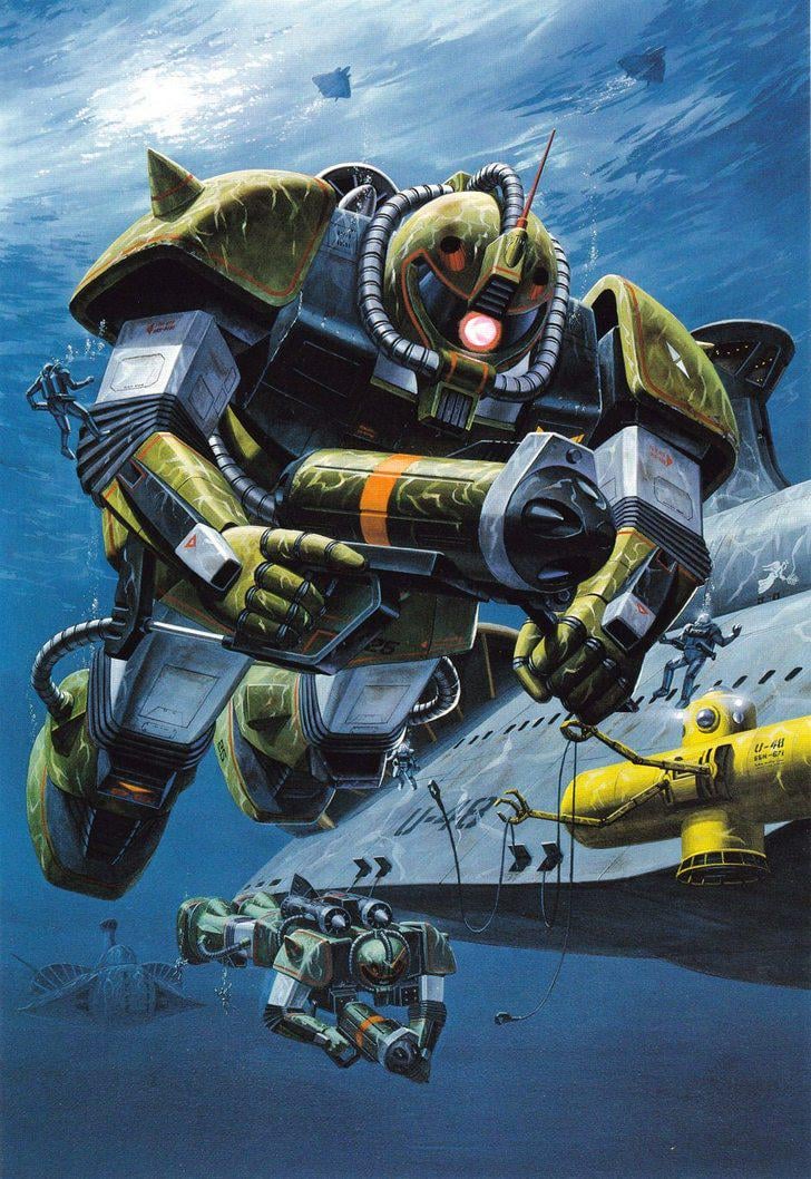 LORE: >While technically part of a JCJ(IS) conversion kit doled out to WD complements for colonisation of aquatic worlds or deep-sea exploration, this variant of the standard drone comes equipped with a number of goodies specifically for the harvesting of local sea-life catalogued for the Selenium and Strontium systems. >Most notably Crust nodules and Class A and B Mutated or Non-Mutated specimens. >Greasers, Cycloparks, Floaters and Crust particles are just some of the beasts lurking in the murky waters of planets like Seleni-3 or Strontium-2. Many are hunted for the unique resources they provide by expeditions as a means of survival or maintnenance in the day to day. Such as in the case of the [CURRENTLY MISSING] Artemis 83 group. DESIGN: >5'8 in height >Reinforced chassis along the limbs and major areas, with an inner and outer shell. The former having an extra tempered titanium layer inside to help deal with increasing pressure at lower depths. >Helmeted heads reminiscent of old Earth dry diving suits (but with that retrofuturistic touch. Helmet can be removed.), 'monoeye' LED visor underneath with screen glass rated for at least 850 metres in depth. (Eye colour traditionally green) >Extreme waterproofing and sealed internals to prevent water damage. >Feet slightly wider than usual to accommodate retractable side-fitted flippers (silicone). >Body typically covered in flexialloy plating, akin to a wetsuit in most cases. >Other mods may affect aesthetic appearance. EQUIPMENT: >Standard HUSO (High-Usage Sea Operations) limited-fabrication harpoon cannons utlising osmium-tipped spears and boasting 105 metres of tensile diamond macrofilament wire. Fires with enough force to pierce the hide of a Greaser. >Loaned JCJ(IS) 'Kestrel' thruster modules (back mounted) capable of propelling them at anywhere between 1-70 mph through the malaise or turbulence of active oceans. >Small fusion-torch attachment located in the index fingers for sealing and prying things on or off surfaces (limited to 'Skipper' or 'Navigator' variants.) TYPICAL OPERATIONS: >Usually these types of drones are deployed in groups of four when the call for culling of populations or certain resources are needed. >Deployment consists of diving from a registered moon pool or ejecting from slider pods for longer-range activities. One half of the squad are designated hunters, one is assigned as a coordinator and the other the 'anchor'. >The hunters will dive as a pair after the coordinator has located a catch on sonar, combining the pods into a floating platform to set-up a phase constrictor net, and they will set off to stalk their target. >The 'anchor' on the other hand will relay this information back to main base so they make preparations for catches and processing, or send out support in the event of emergency or extra cargo. They are also responsible for keeping the pods running while the hunters spear and reel in their catch, as well as on-site aid for their colleagues. DRAWBACKS: >Packing in all that extra gear sacrificed cyber warfare suites, audio communication modules (beyond radio signals) and oil-based powering systems. >For that last one they tend to rely on solar-powered interchangeable batteries, which while powerful, do not last long under the high-consumption tasks Whalers are given. >As such, extended engagements are limited and generally not advised. Hence the need for an 'anchor'. >There is also the issue of lost gear and limited usage. Whalers are typically more expensive than the average worker, and out in the endless tides of an ocean, are hard to recover should they be damaged. >Built to resist the pressures of the seas, the extra baggage also means they're slower on land than they are in water. Granted while a compromised whaler might dash at you with their thrusters, they don't have great turning power. Especially in enclosed spaces.