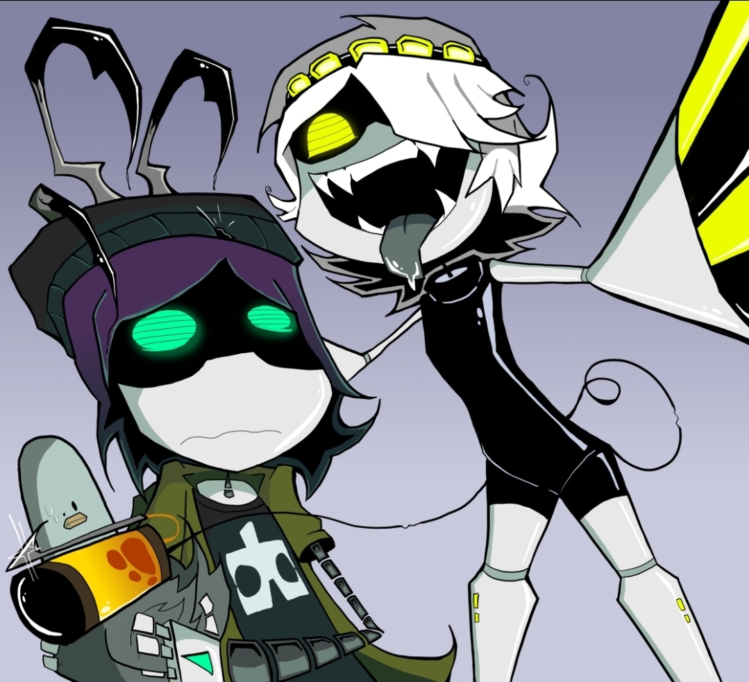 >>309648 She's not a plant drone but here you go. >>309652 There's more to it but to simplify for now and to not spoil an upcoming greentext: >Strawberry: Yellow eyes. >Solara/SC-8993: Pink eyes. >Parasite: No eyes/Black empty visor.