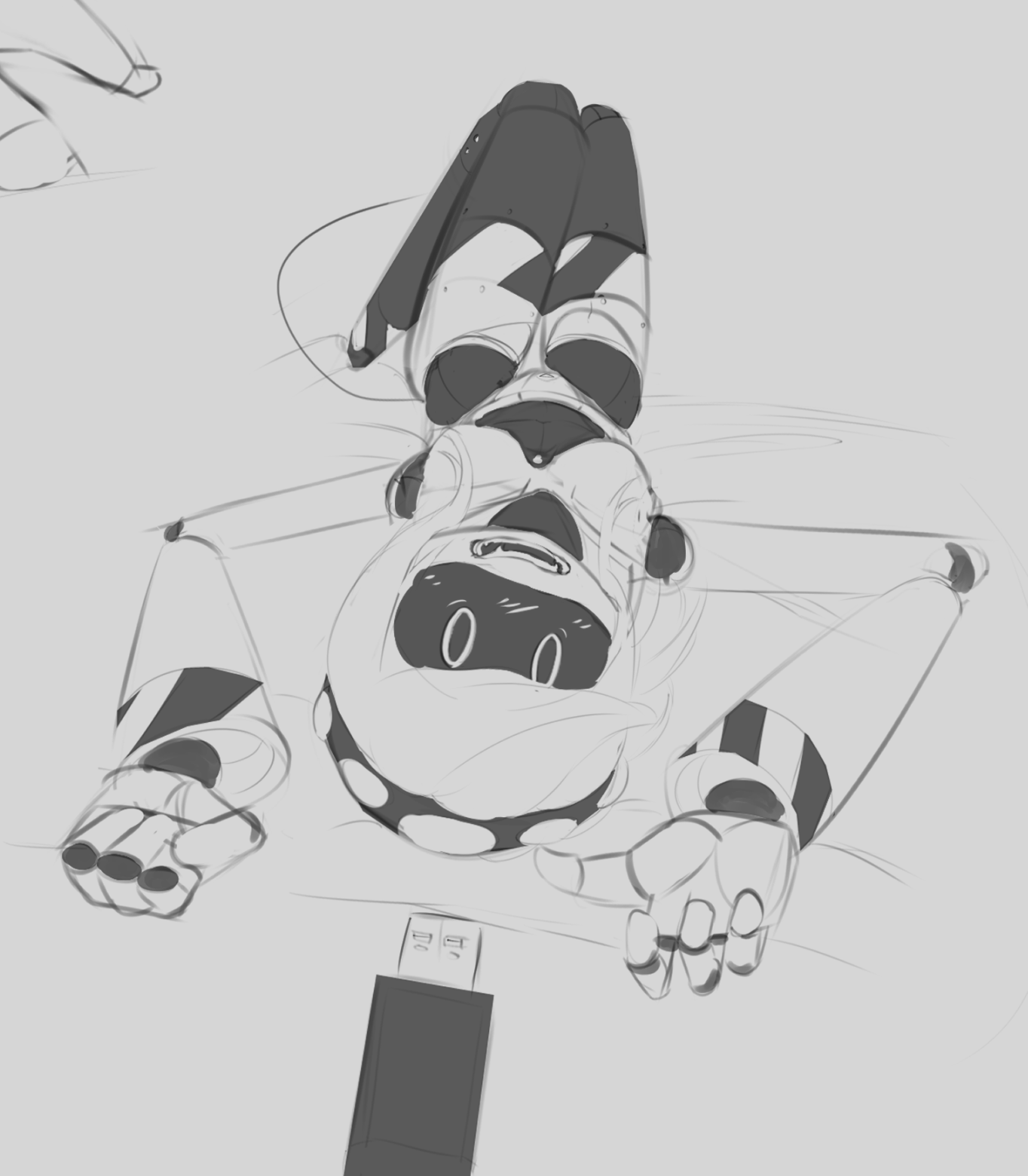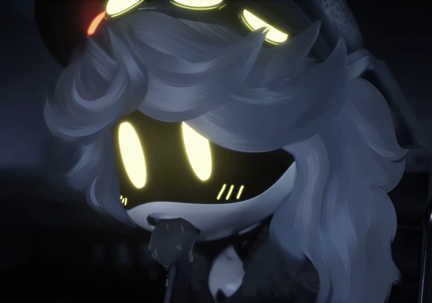 >C# froze, his claws halting his search.For a long moment, he said nothing, the air thick with the faint static of his internal turmoil. >When he finally spoke, his voice was low, cracking with something Fb hadn’t heard in a long time.