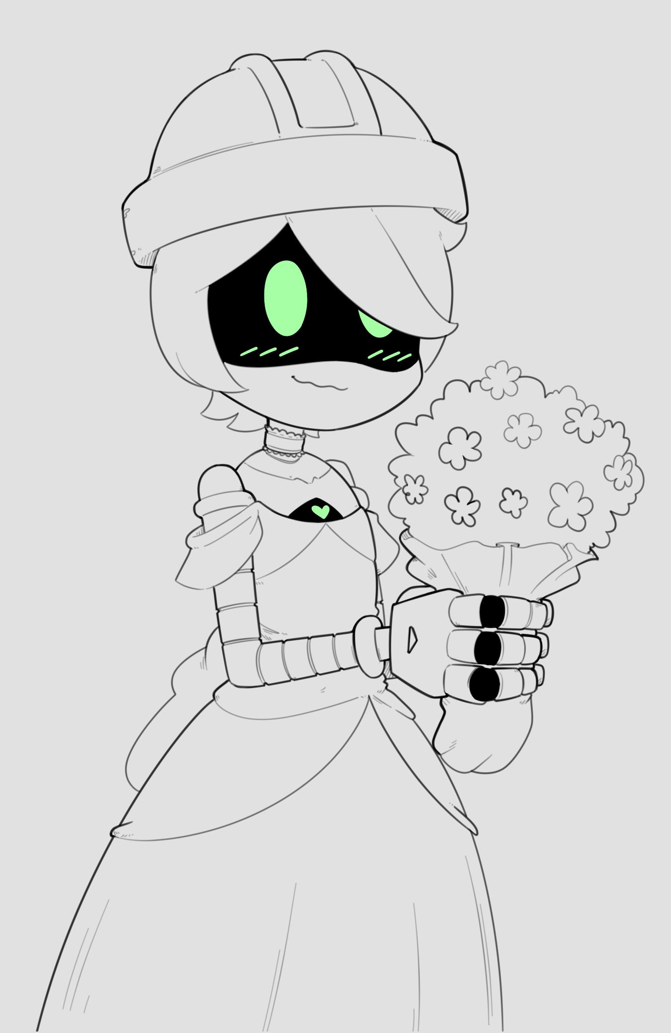 >Amid the chaos, a grand piano stood like an altar, its ebony surface reflecting the golden lanterns above. >At its keys sat C#, a Worker Drone with a glossy black chassis, his amber optics focused as his fingers traced a tentative melody. >His designation marked him as the manor’s premier pianist and singer, but his notes carried a spark beyond programming. A yearning for something greater than JCJenson’s commands. >He hummed softly, testing a hymn for the Gala’s centerpiece, each chord crisp yet tinged with warmth. Across the chamber, Fb entered, her silver frame gliding with a dancer’s grace. Her skirt, a delicate mesh of synthetic silk, swayed as she adjusted a wide-brimmed hat, its brim catching the light. >Her white optics scanned the room, landing on C# with curiosity. Assigned as the Gala’s singer and dancer, she was new to the manor, her role to complement the pianist she’d yet to meet. She paused, listening to his melody, her foot tapping instinctively to the rhythm. >“Too heavy on the bass,” she called, her voice clear but gentle, cutting through the piano’s echo. “It drowns the harmony.” C#’s fingers stilled, his visor flashing a surprised grin. >“Critiquing me already? I don’t even know your designation.” >His tone was playful, but his optics studied her, intrigued by the confidence in her stance. “I’m Fb,” she said, stepping closer, her hat tilting as she smiled.