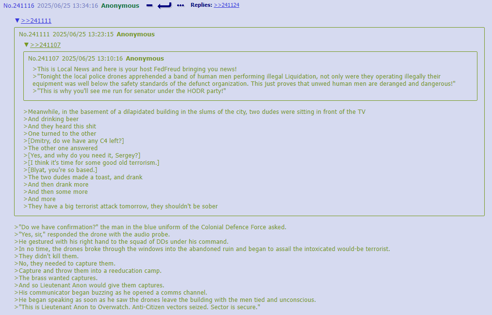 [ATTENTION CITIZENS] [NONCOMPLIANT HUMAN DETECTED] [ANON #179302710-DELTA, REPORT TO REEDUCATION SITE#69-A FOR REEDUCATION AND THEN BE ASSIGNED A DRONE WIFE] [RESISTANCE WILL BE PUNISHED WITH A YEAR LONG SENTENCING TO THE BREEDING PITS]